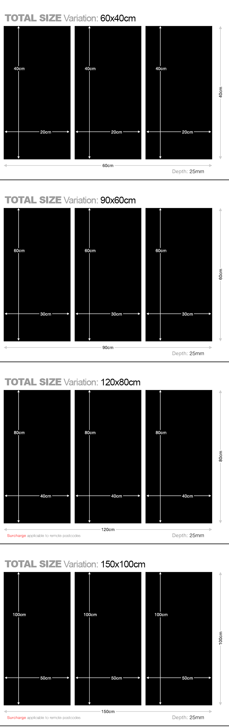 | * Canvas Stretched around a wooden frame. * Ready to Hang (Stretched on frame, NOT rolled) * Printed reverse sides where applicable (see image) * Fine Art Giclee Matte Canvas * Produced using Latest Technologies * Exclusive Designs to Wallrus Art * Designed and Made in England, United Kingdom * Customer only needs hook or screw * Large items sent DHL next working day * Smaller items Royal Mail 1st Class 2D barcode * We have over 10 years experience on eBay |