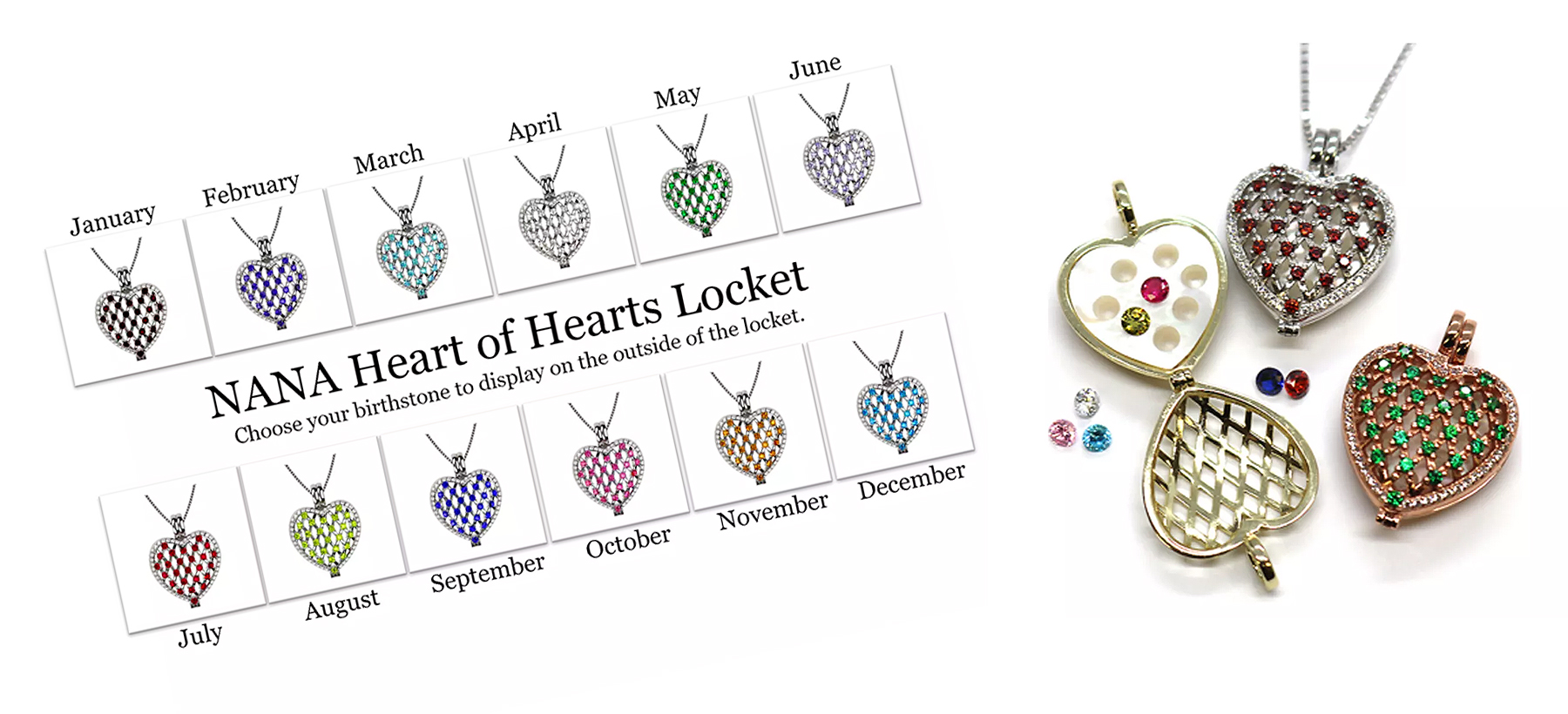 NANA Heart of Hearts Mothers Pendant Locket Simulated Birthstones