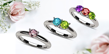 Princess Mothers Ring with 1 to 6 Simulated Birthstones in Silver, 10k-14k Gold
