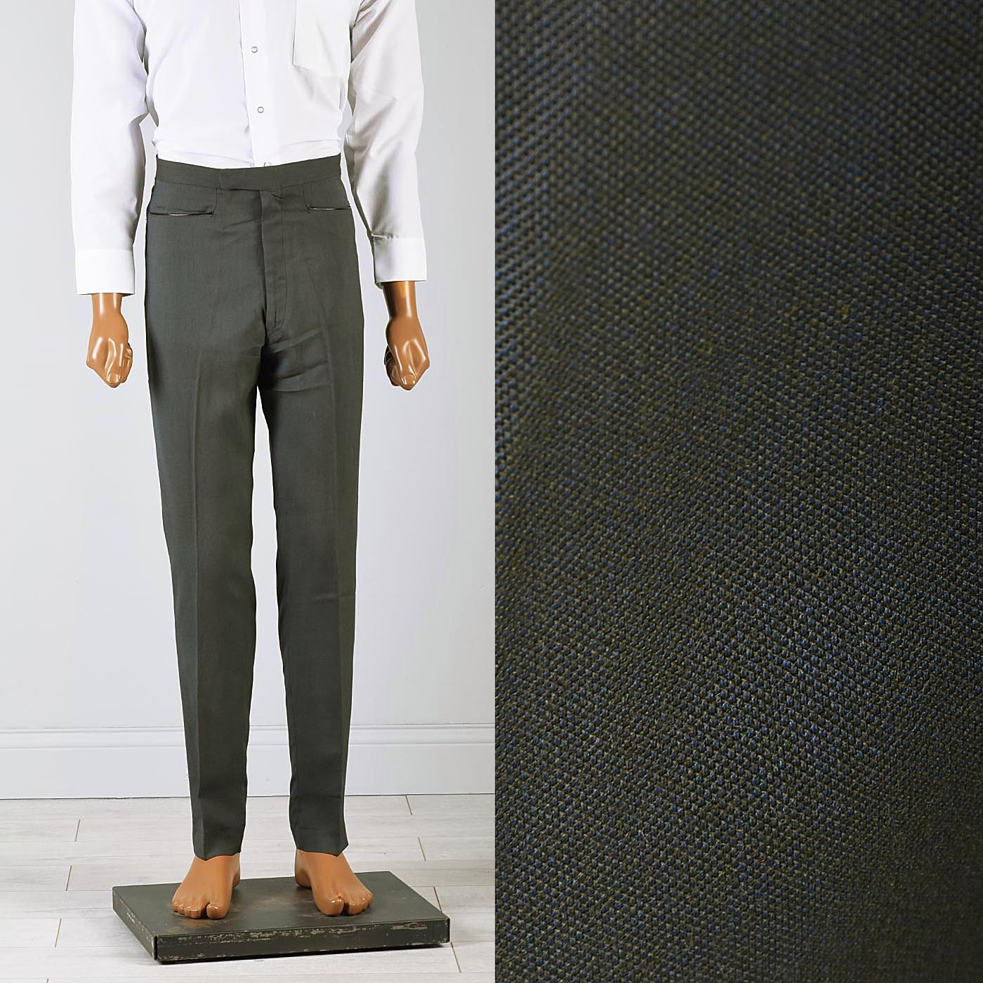 30x30 Vintage Deadstock 1960s 60s Mod Green Bronze Sharkskin Pants Peg Highwaist