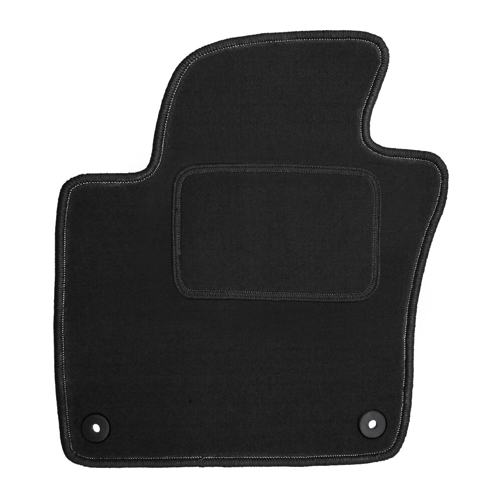 - Die Matten bestehen aus robustem, strapazierfähigem Nadelvlies schwarz in Dilour-Qualität mit Absatzschoner (Trittschutz) auf der Fahrermatte und farbgleicher Hochglanz Kettelung mit weißer Ziernaht