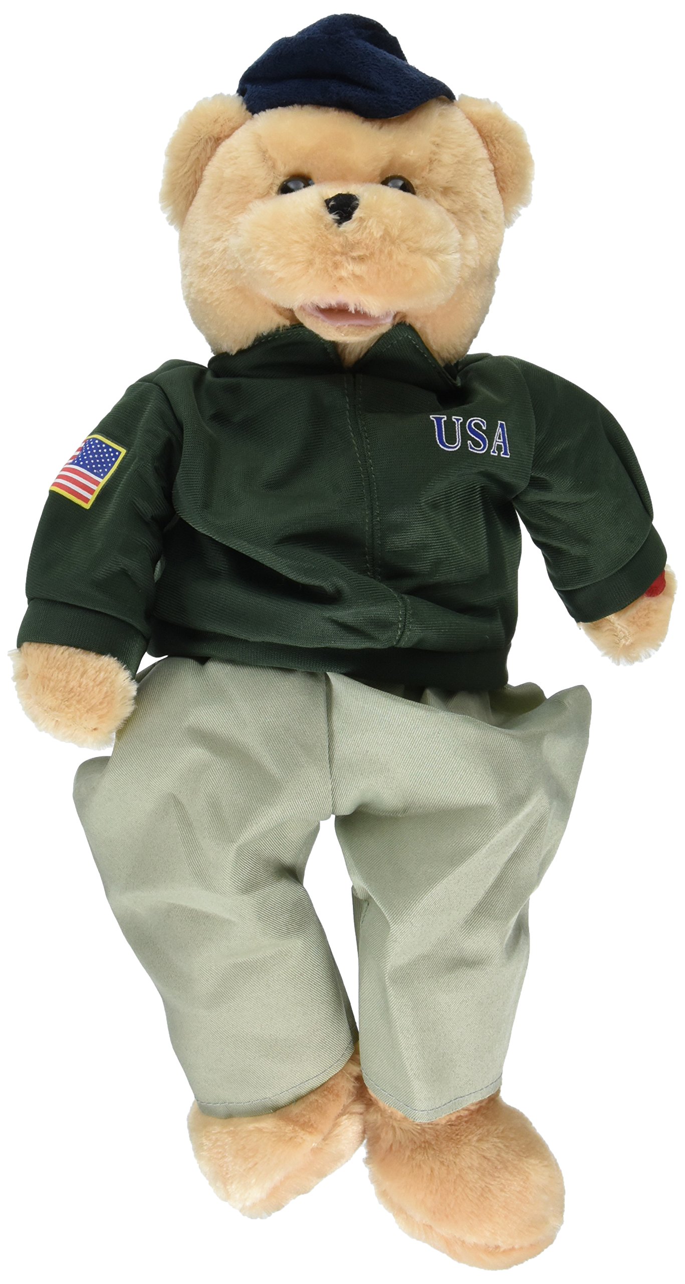 Bear in full uniform. Head sways and mouth moves sings "Wild Blue Yonder".