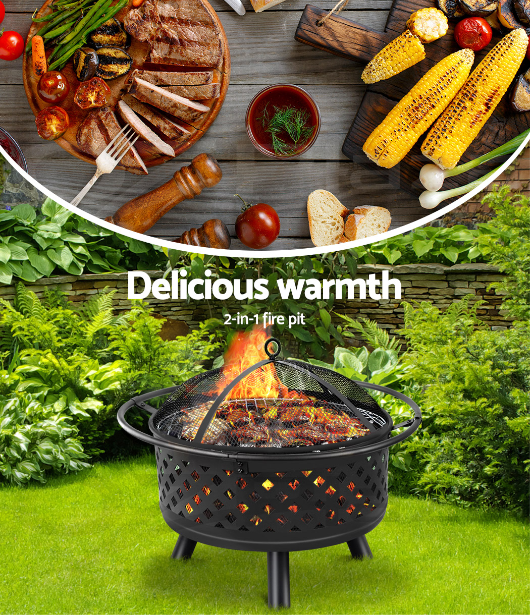 With the 2-in-1 Fire Pit, you can expect some genuine all-season enjoyment all round. First, as a fire pit, it’s simply great sitting around a nice warm fire with friends and family to chat the day or night away. And should you decide to up the ante and have a sumptuous BBQ instead, just load on the food for some great feastings.