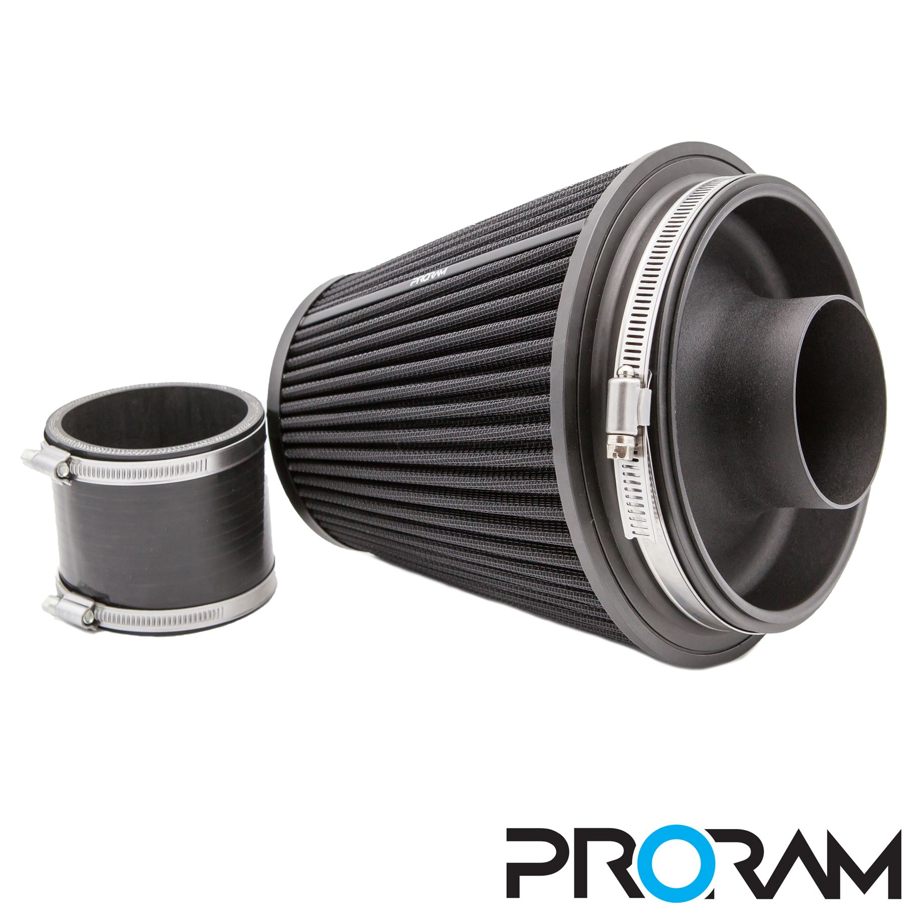 This PRORAM performance filter has been designed to fit any vehicle with the appropriate MAF/inlet size selected from the drop down menu above. This filter would be fitted inside a soft intake pipe, such as silicone hose and some OEM pipework. If you are fitting this to a MAF Housing or solid intake pipe, please select to add one of our high quality 5-ply silicone couplings, which comes with 2 of our W2 Hose clamps to secure the connerction.