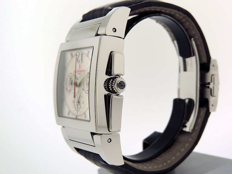 Chrono No2B in polished Stainless Steel case measuring 33 x 33mm(