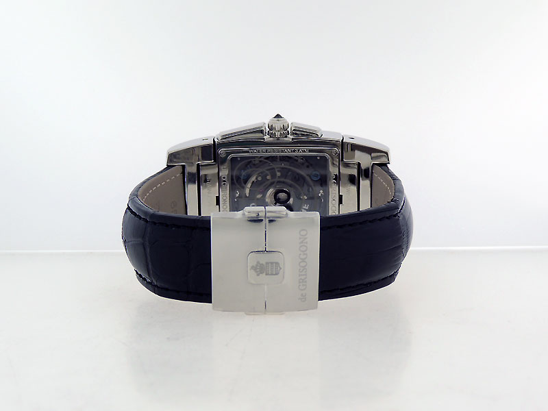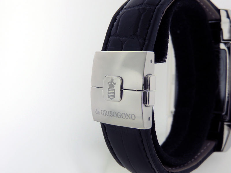 caseback, leather Strap with De Grisogono Hidden Folding Deployment