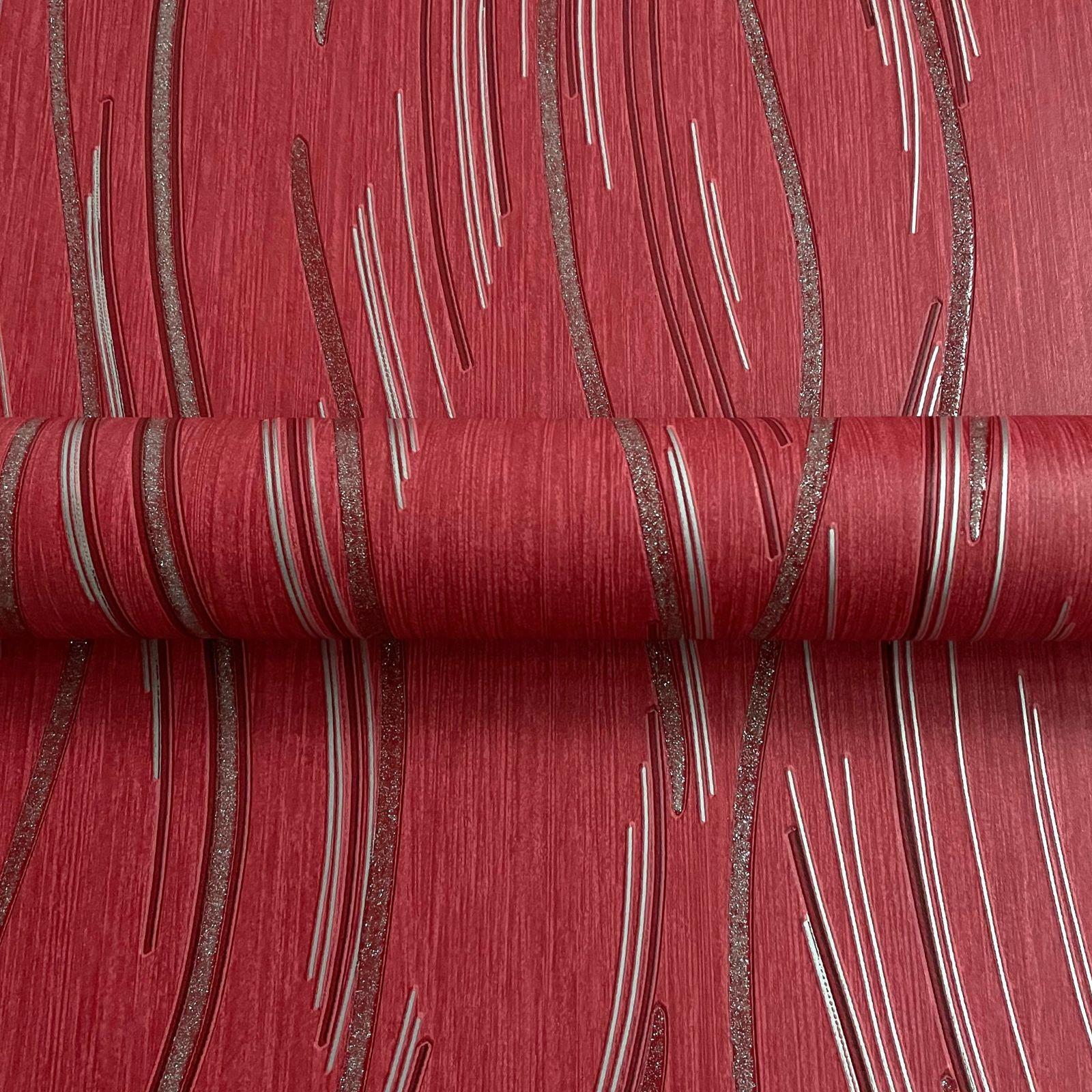 This beautiful Shimmer Wave Wallpaper will add a stylish finishing touch to your home. The design features a curved stripe pattern of broken wavy lines in contrasting finishes of matte red, metallic silver and silver glitter. This is set on a matte red background patterned with a faint stripe design. This high quality wallpaper would look great when used to create a feature wall or to decorate an entire room.