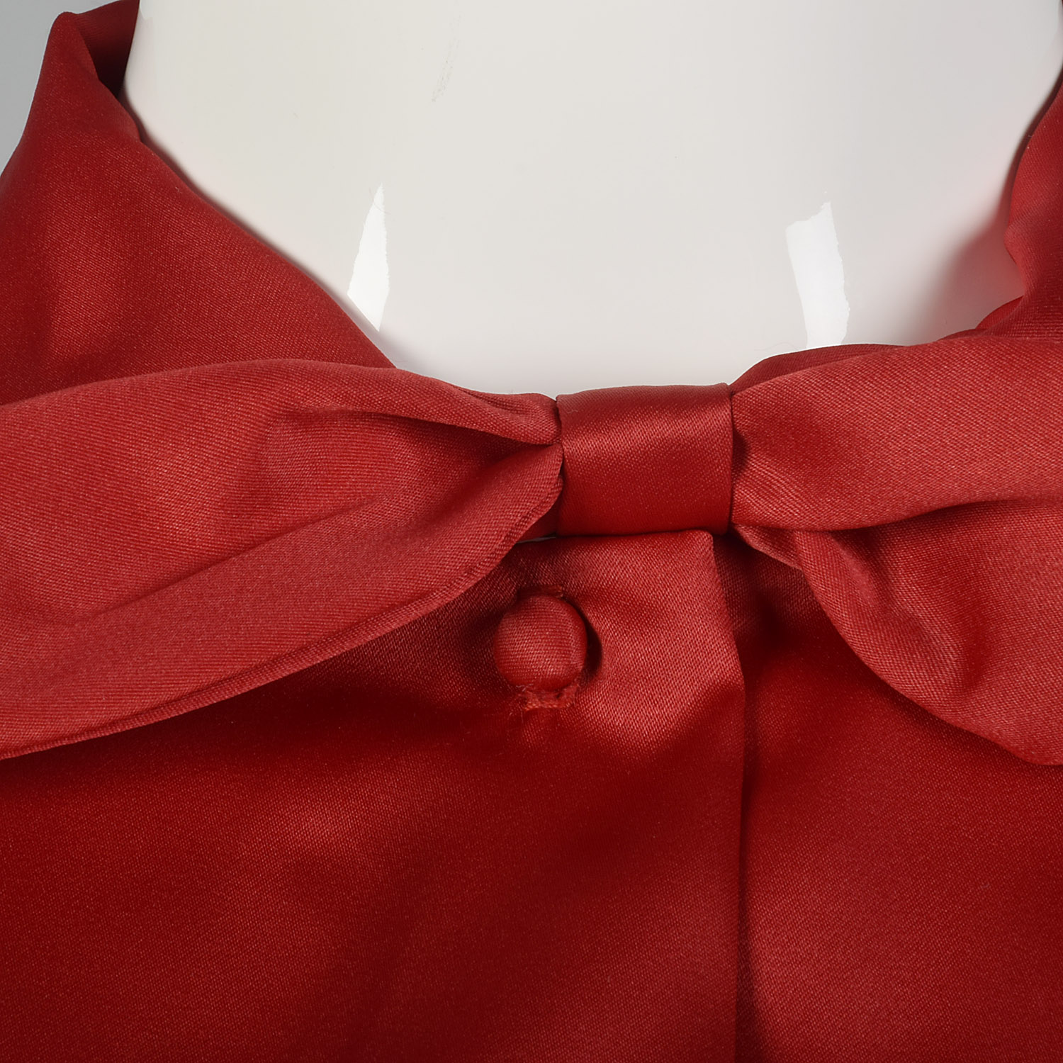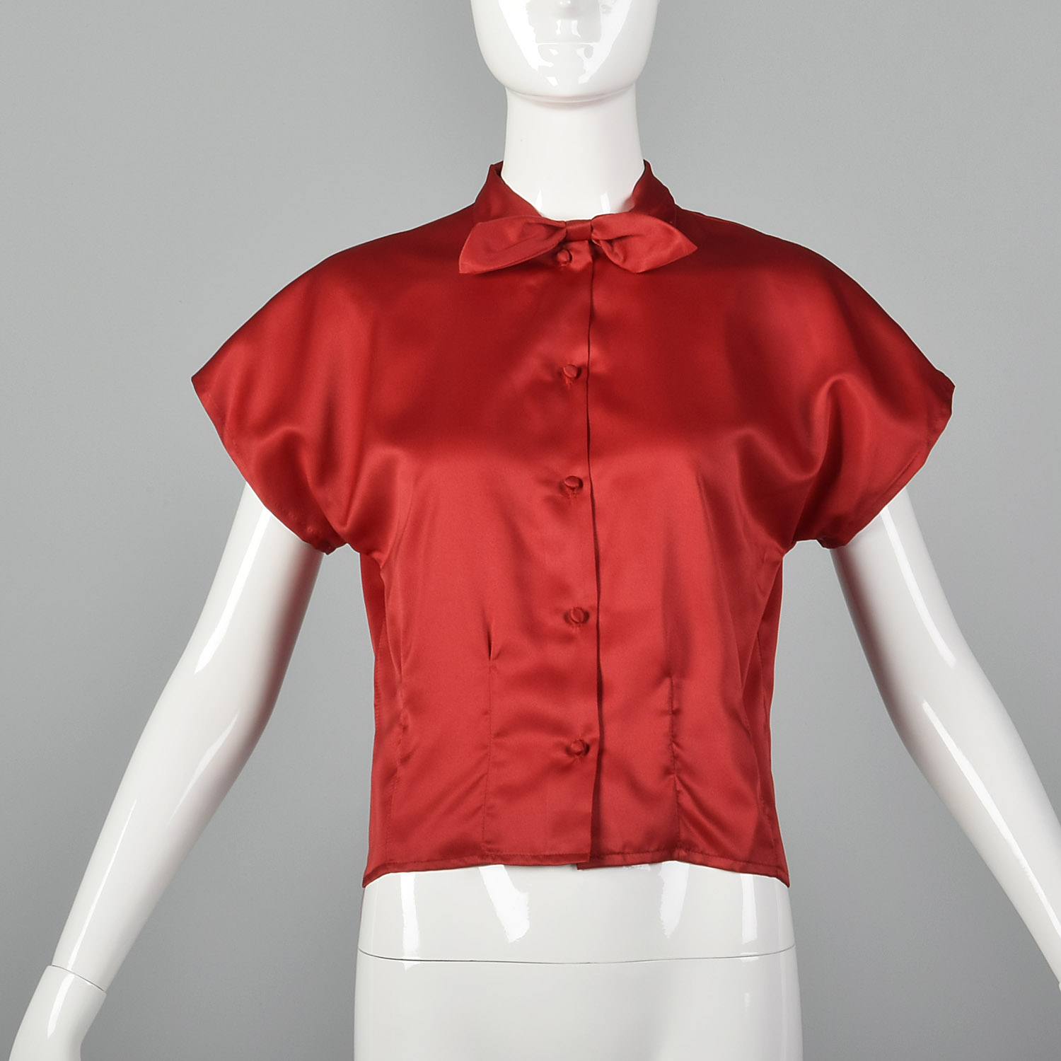 S 1960s Silky Red Blouse Top Short Dolman Sleeves Pin Up Separates Neck Bow 60s