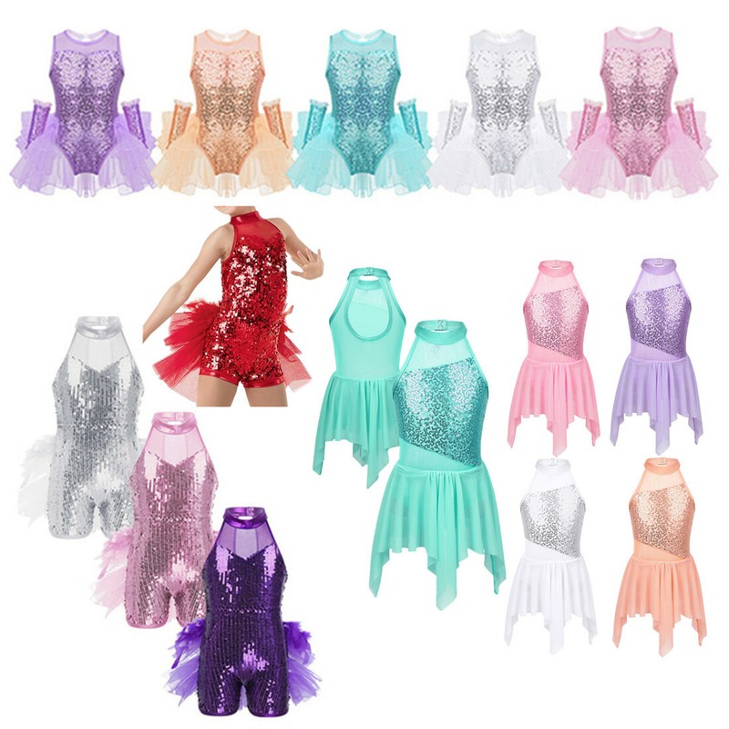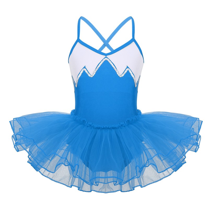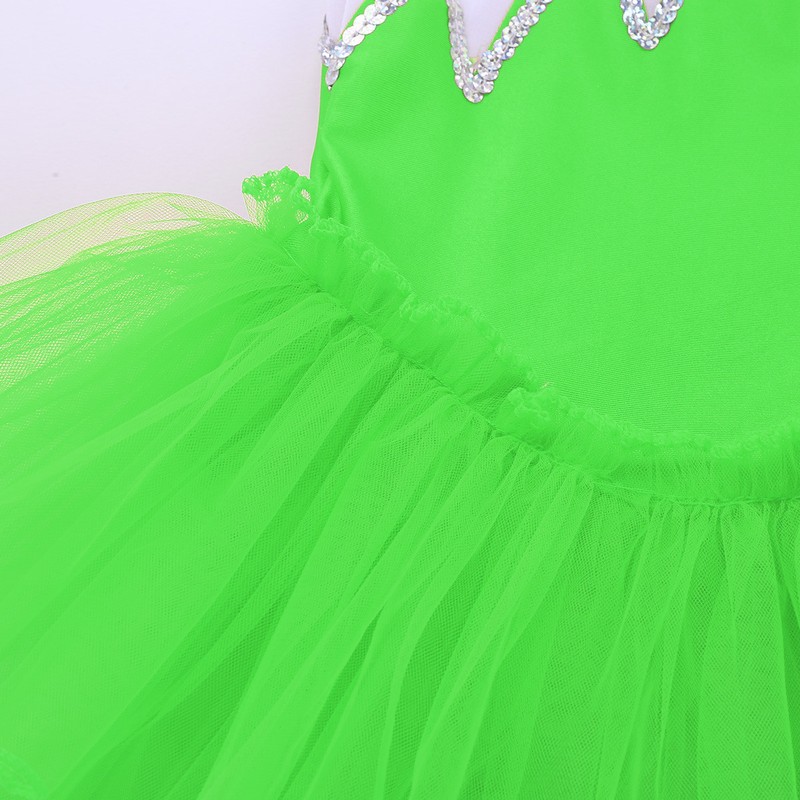 Ballet leotard dress is made of polyester, sequins and mesh material, hand wash.
