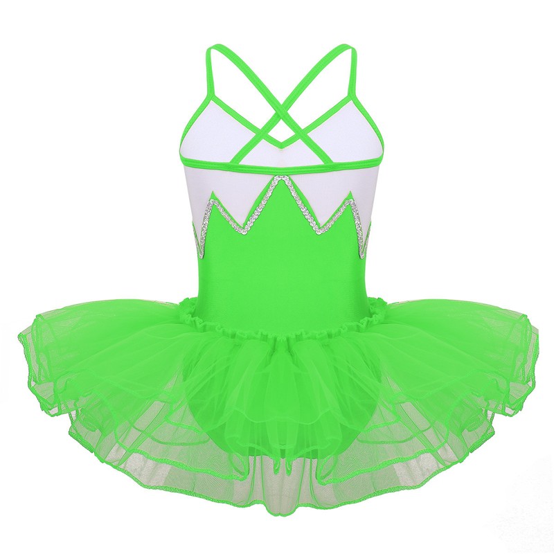 Ballet leotard dress is made of polyester, mesh and sequins material, hand wash.