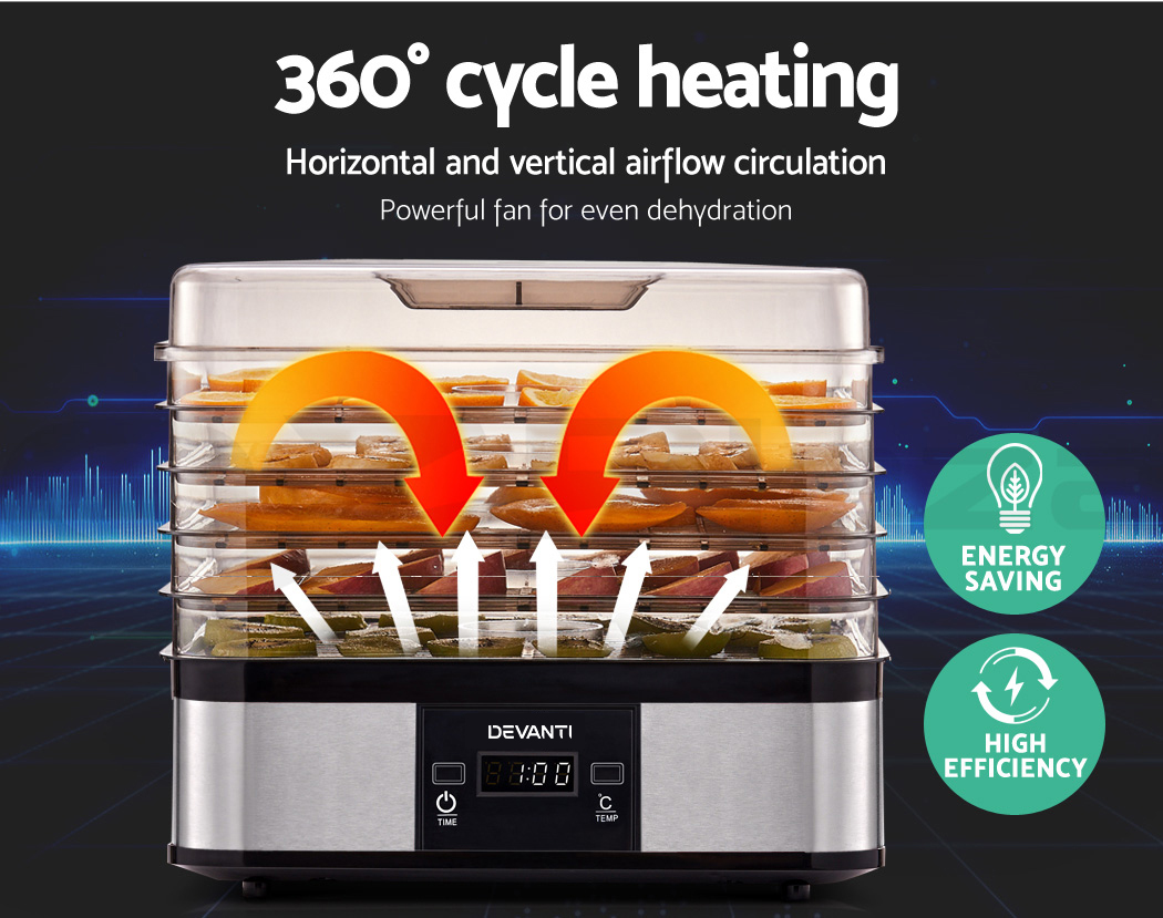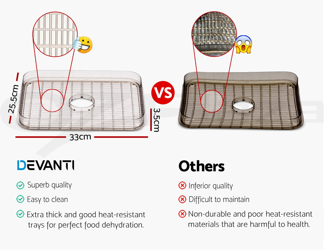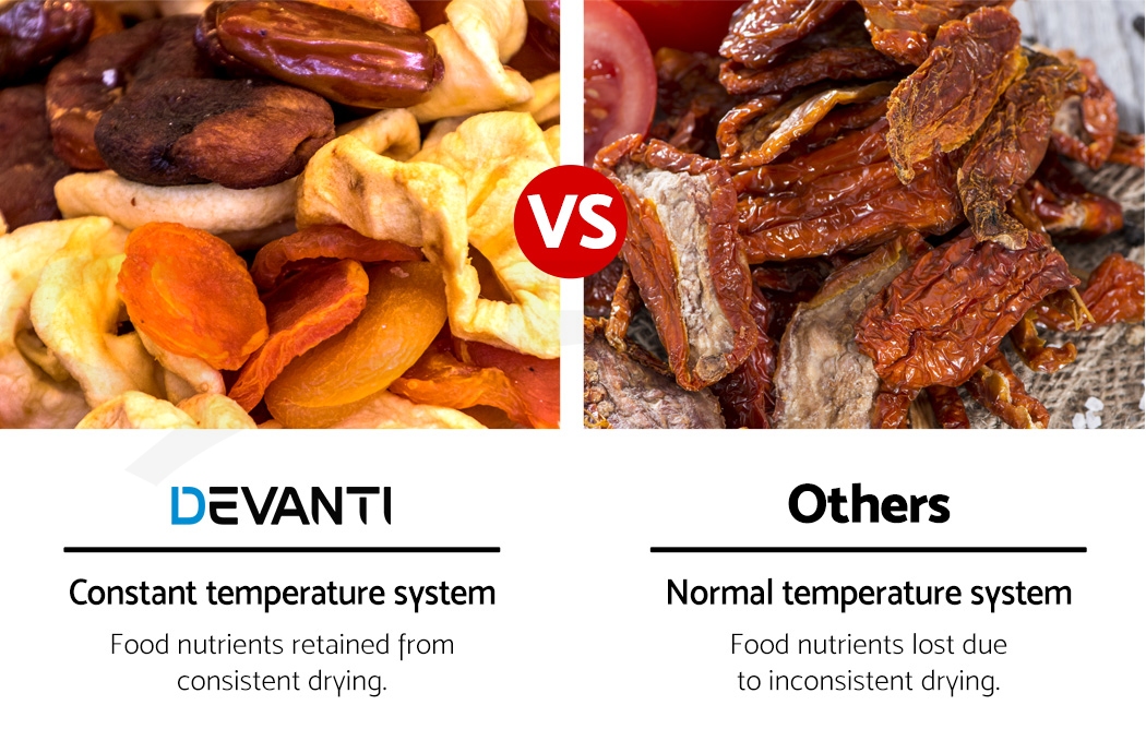 Studies have shown that dried food retained as much nutrients as their fresher counterparts and has even more concentrated flavours. So let the Devanti Stainless Steel Food Dehydrator help you discover a whole new realm of healthy eating today. Get yours today.