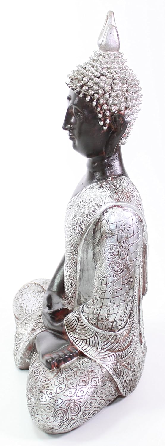 An Inspired Silver Color Earth Touching Meditating Buddha Statue!