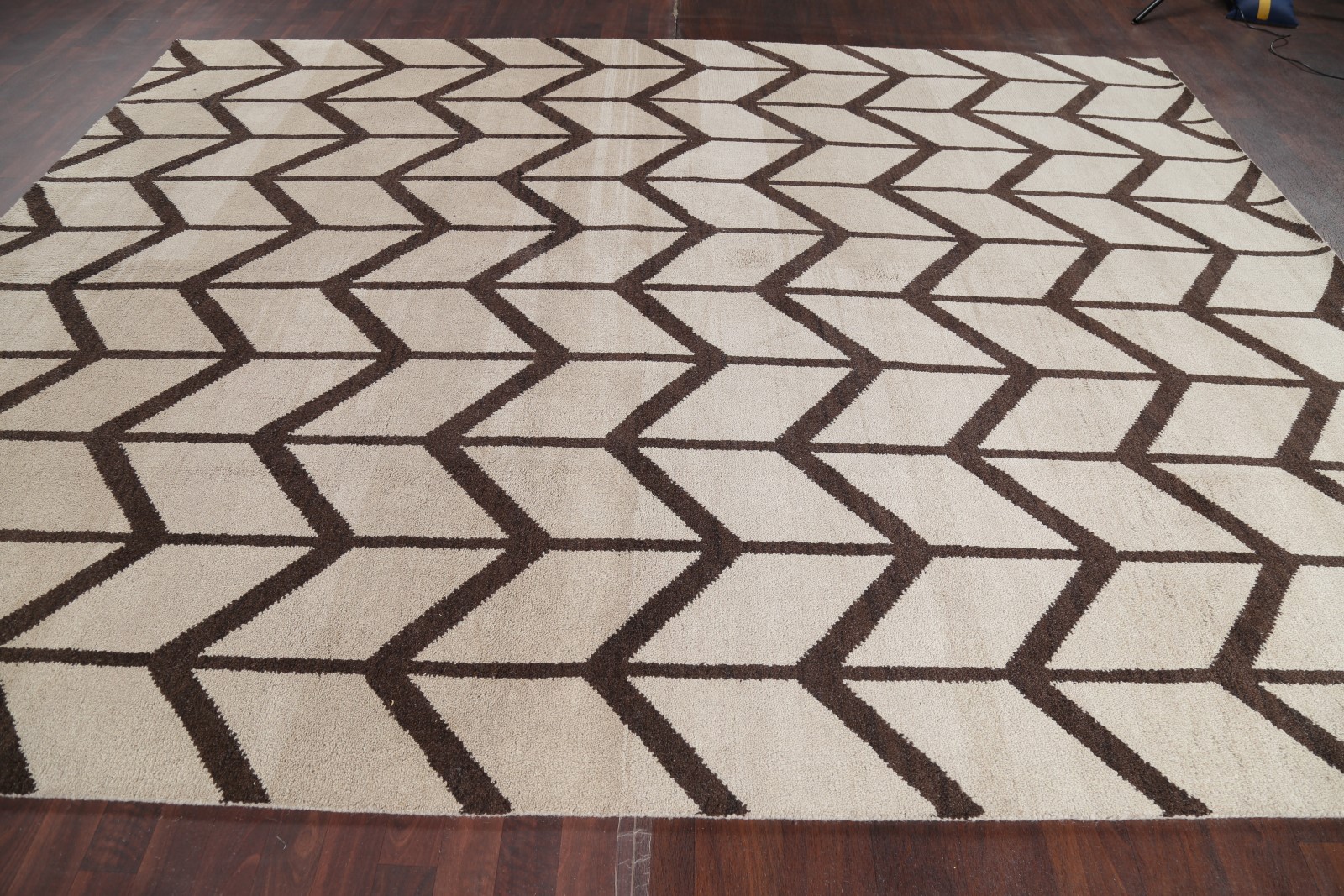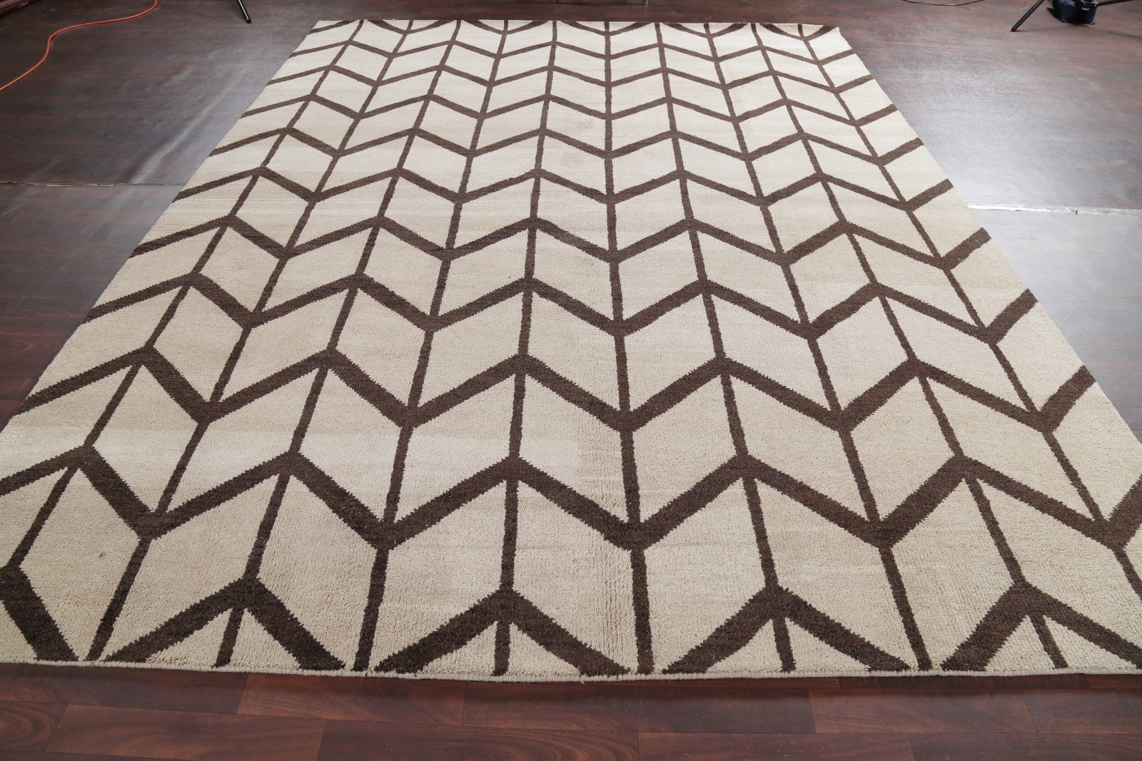 Geometric Quilt Ivory Trellis Oriental Large Area Rug Wool Hand-made Carpet 9x12