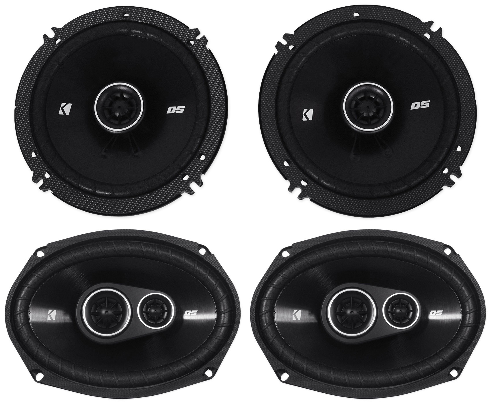 Package: Pair of Kicker 43DSC69304 6"x9" 360 Watt 3-Way Speakers With 4-Ohm Impedance + Pair of Kicker 43DSC6504 6.5" 240 Watt 2-Way Coax Car Stereo Speakers