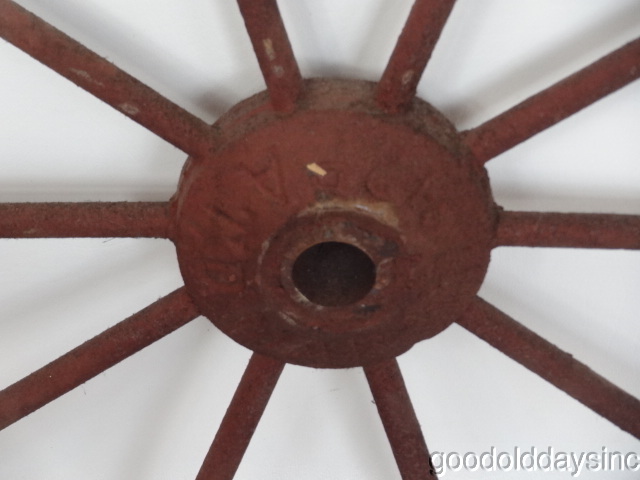 Vintage Cast Iron Wheel w 10 Spokes Farm Steampunk . It is marked a "Pat'd Mar. 19, 1912"