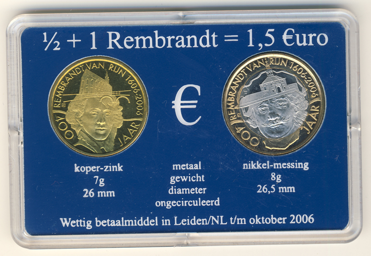 Sie bieten auf eine 1/2 Euro und eine 1 Euro (sog. Rembrandt Euro) 2006. (in Leiden offizielles Zahlungsmittel bis Ende Oktober 2006) Motiv: