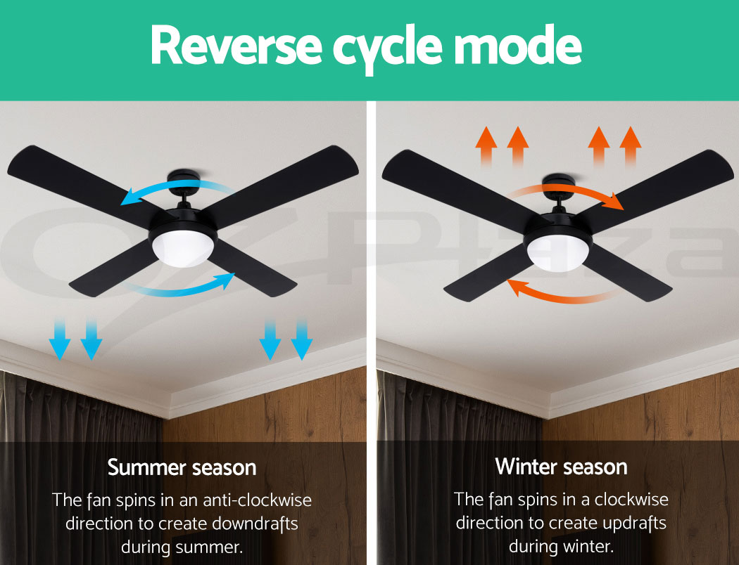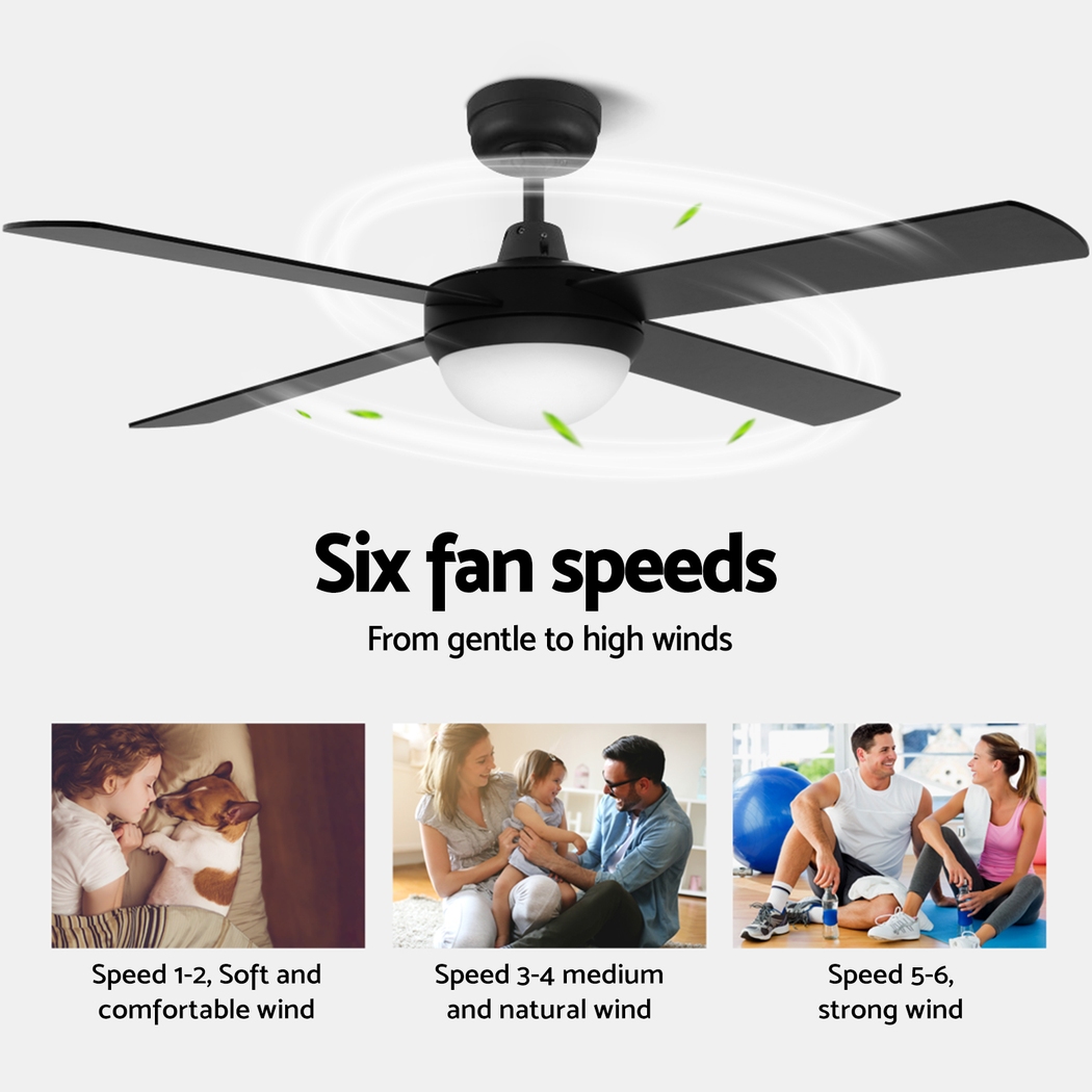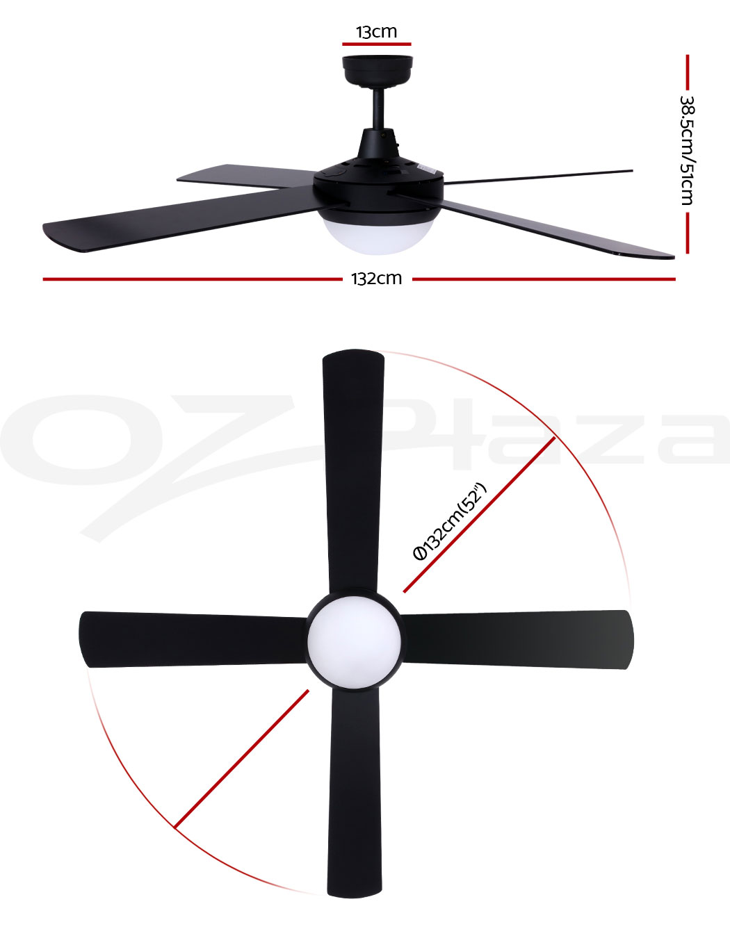 Gentle breezes, light drafts or high winds, the Devanti 52" Ceiling Fan is ever ready to meet your requirements easily. With six fan speeds, the contemporary-design ceiling fan also has a reverse cycle motor that can create downdrafts during summer or updrafts during winter for greater comfort. Its four high-quality wooden blades are pitched at an airflow-inducing 12 degree for more effective wind creation. Plus, its energy-efficient 35W motor operates ever so quietly. Also featured is built-in memory-enabled LED lighting that can bring on a cool white, warm white or neutral lighting ambience to go with the fanning function. Better still, the fan can be set for up to 8 hours of timed operation and the handy remote control makes this fan a breeze to use from anywhere in the room. The ceiling fan also comes with all the accessories for an easy installation including an extension rod. Available in black, white or silver colour to match your decoration easily.