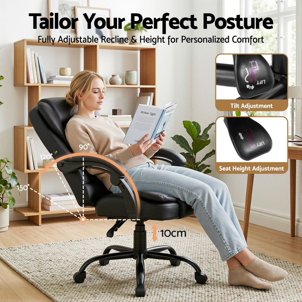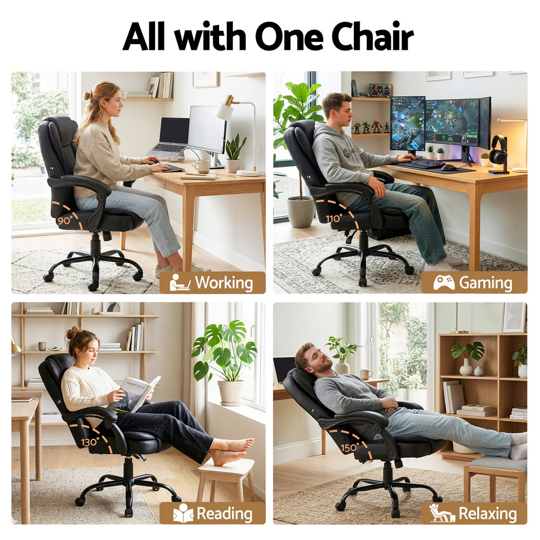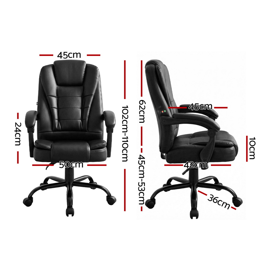 As you sit in the high-back premium faux leather seat, you can bring on a soothing two-zone vibration massage aimed at your upper and lower back. Better still, the backrest can be adjusted and locked at four different angles to suit any activity, such as working, reading, viewing videos or just resting. Let the massage chair do its magic to relieve back tension, soothe aching muscles and provide all-round comfort.