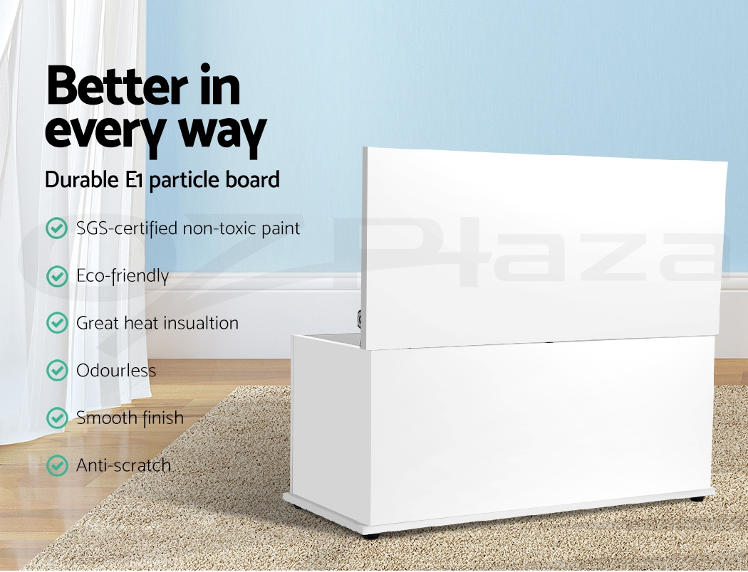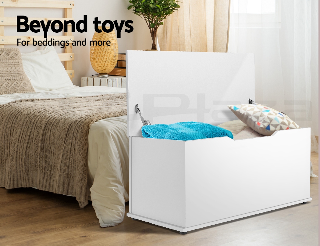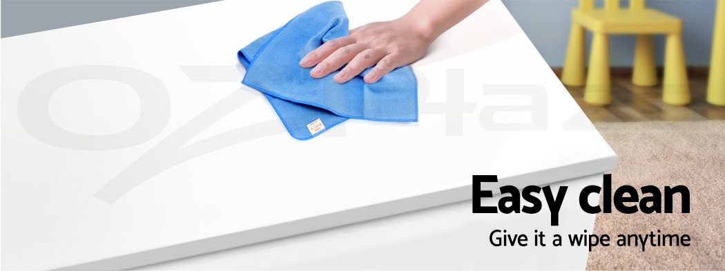 Made of sturdy 15mm particle board, the box measures 92cm long and 40cm wide with a depth of 40cm. It is compact and deep enough to store all of his or her favourite play things without fuss. With a white paper finish, the child-safe box also features a thoughtful air gap between the lid and box for finger protection. Not least, the box also comes with floor protectors to prevent damage and scratches on your pristine floor.
