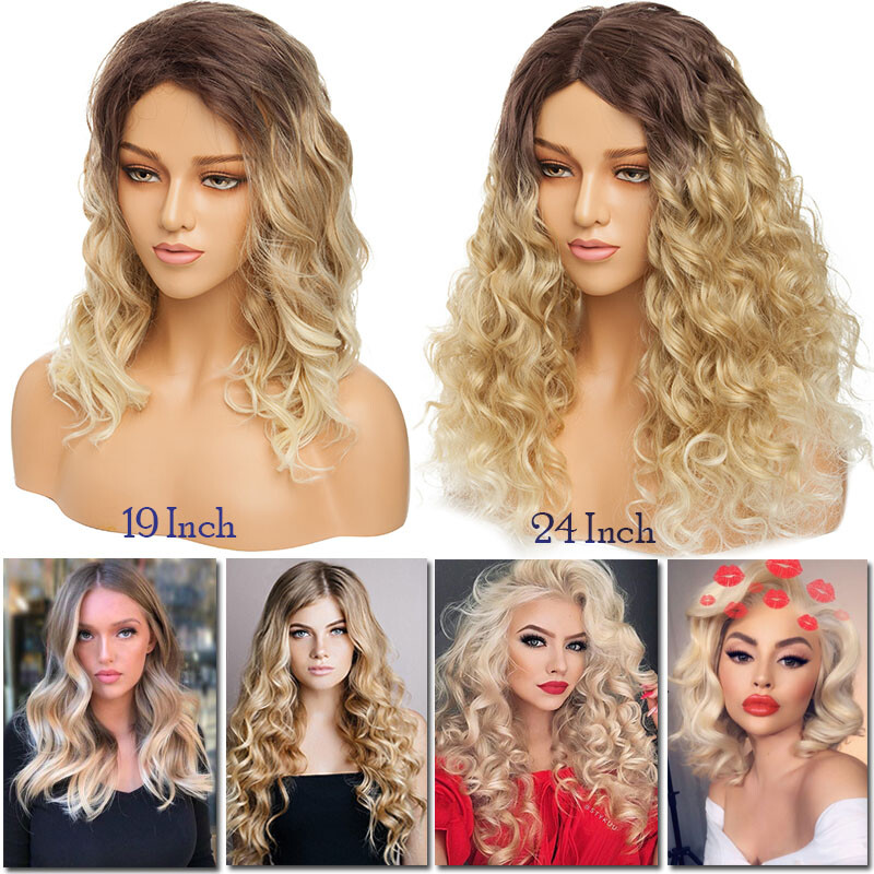 Full Wig Long Curly Straight Synthetic Hair With Blonde Wigs For Women Ladies us