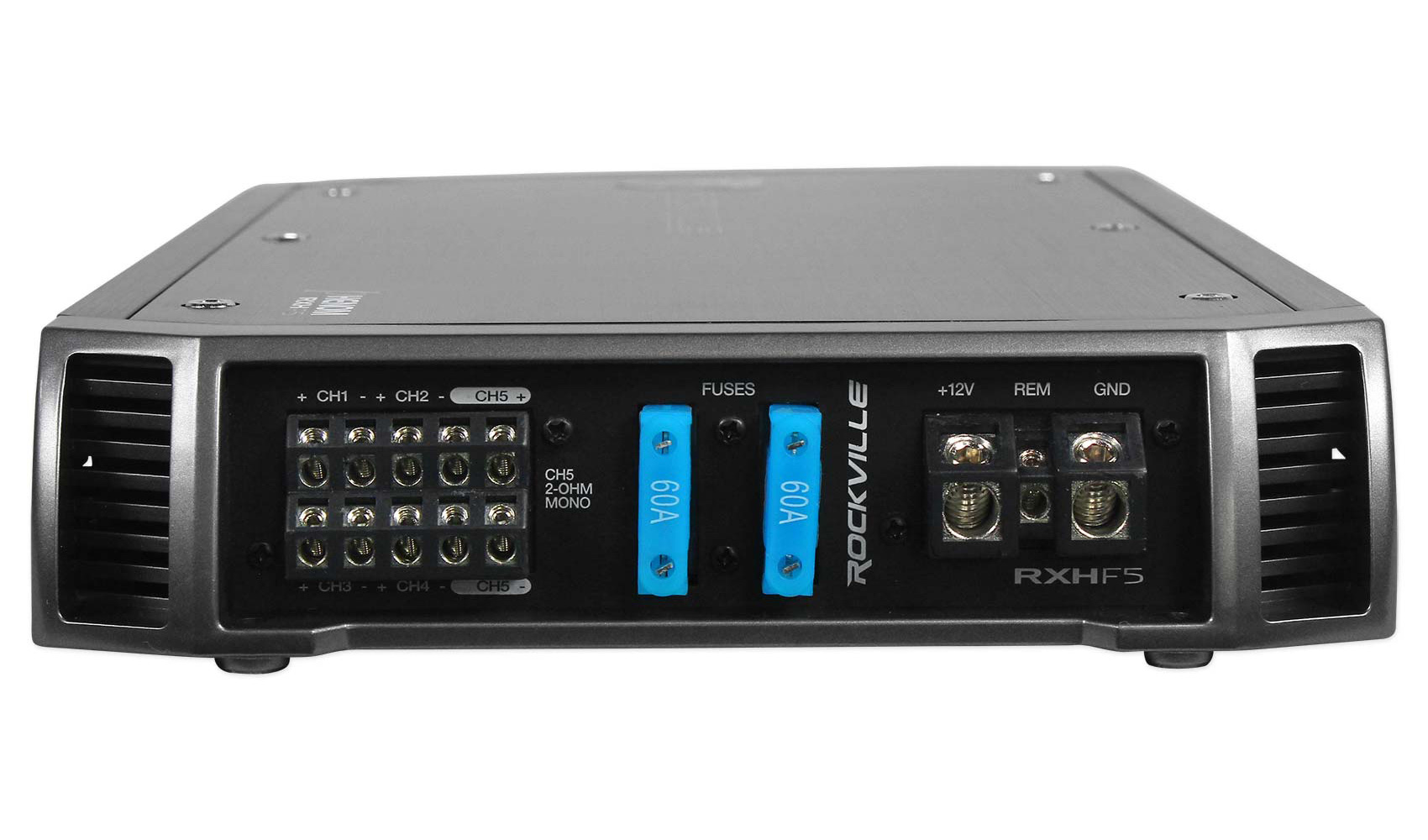 The RXH-F5 is a 5 channel amplifier with 3,200 Watts peak output and 550 Watts