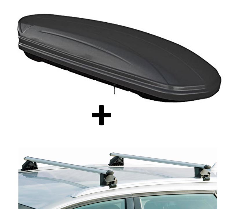 Dachbox 320 Liter abschließbar schwarz matt VDPMAA320 + Dachträger für Bmw Serie 5 Touring (F11) (5 Türer) 2010-2017