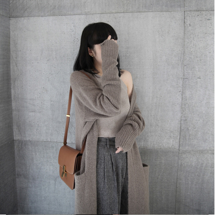 Lady Sweater Knitted Coat Jacket Cardigan Outwear Long Jumper Loose Casual Solid