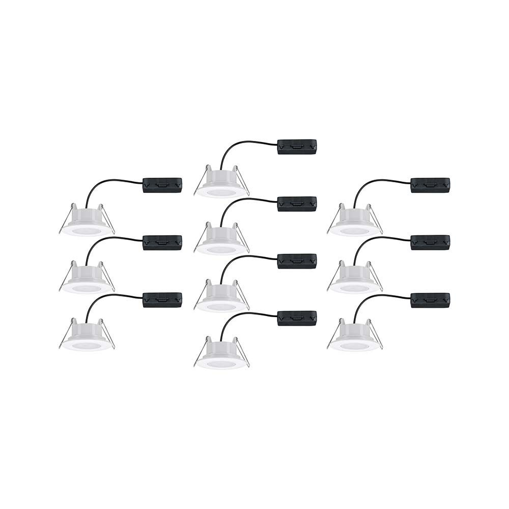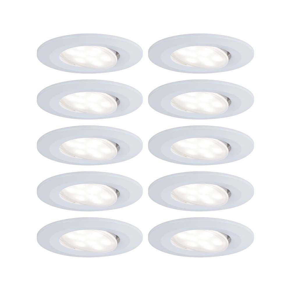 Calla Einbaustrahler 10x6,5W in Weiß matt, sind blendfreie Einbaustrahler aus Kunststoff, die sich sowohl für Neuinstallationen als auch für den Austausch bestehender Installationen eignen. Dank 230V-Direktanschluss, können Sie die Leuchten ganz einfach uneingeschränkt miteinander verketten. Im Lieferumfang sind LED Leuchtmittel enthalten, die mit ihrem neutralweißem Licht für ein stimmungsvolles Ambiente sorgen.