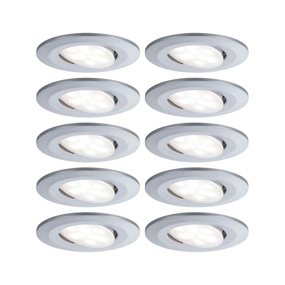 Calla Einbaustrahler 10x6,5W in Chrom matt, sind blendfreie Einbaustrahler aus Kunststoff, die sich sowohl für Neuinstallationen als auch für den Austausch bestehender Installationen eignen. Dank 230V-Direktanschluss, können Sie die Leuchten ganz einfach uneingeschränkt miteinander verketten. Im Lieferumfang sind LED Leuchtmittel enthalten, die mit ihrem neutralweißem Licht für ein stimmungsvolles Ambiente sorgen..