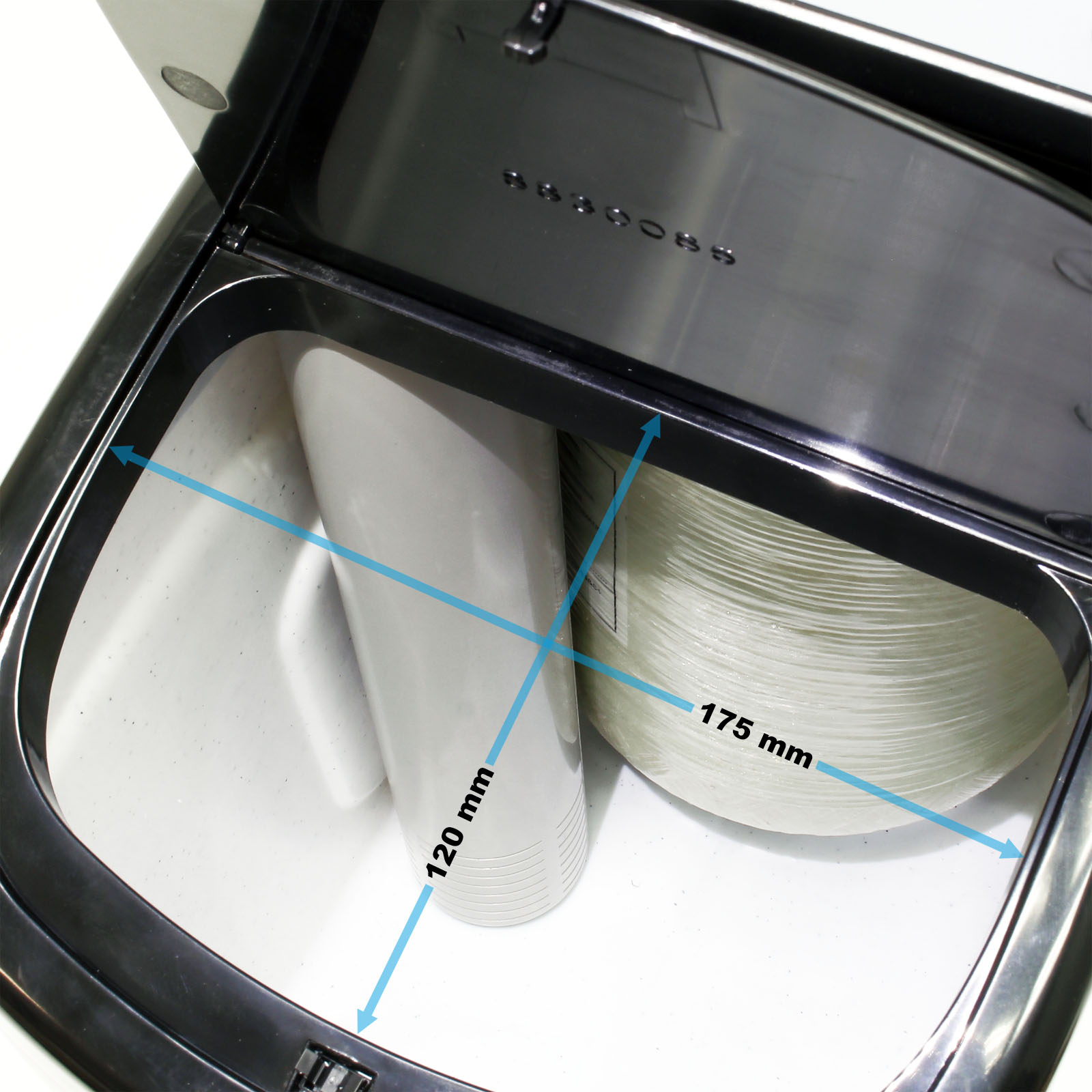 | Abmessungen | Harzvolumen: 6,5L Größe des Solebrunnens: 12kg Einlass/ Auslass: 26,44 mm (3/4") Ablaufgröße: ⌀ 14 mm Harztank: 177,8 x 431,8 mm |