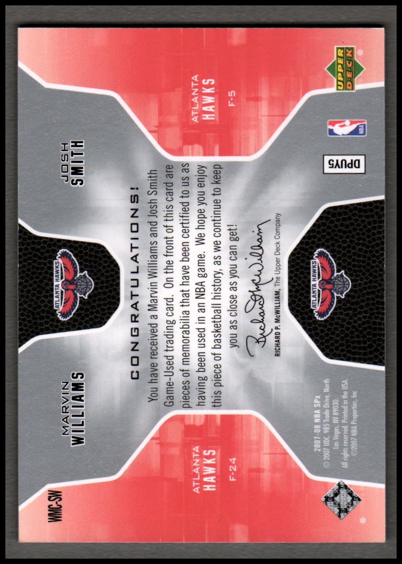2007-08 SPx Winning Materials Combos #SW Marvin Williams/Josh Smith Jersey