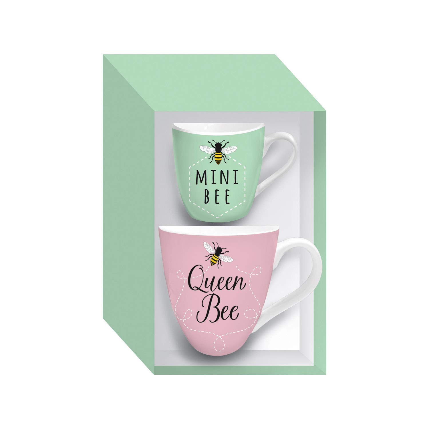 - HIGH-QUALITY COMPOSITION: The stunning set includes 1 "Queen Bee" pink mug and 1 "Mini Bee" mint green mug in a smaller size. Both mugs feature cute bumblebee designs.