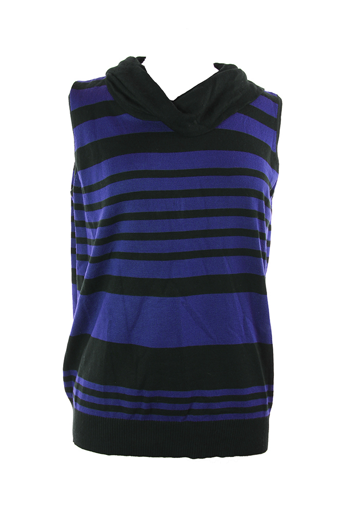 Joseph A Womens Blue Black Sleeveless Striped Cowl-Neck Sweater XL