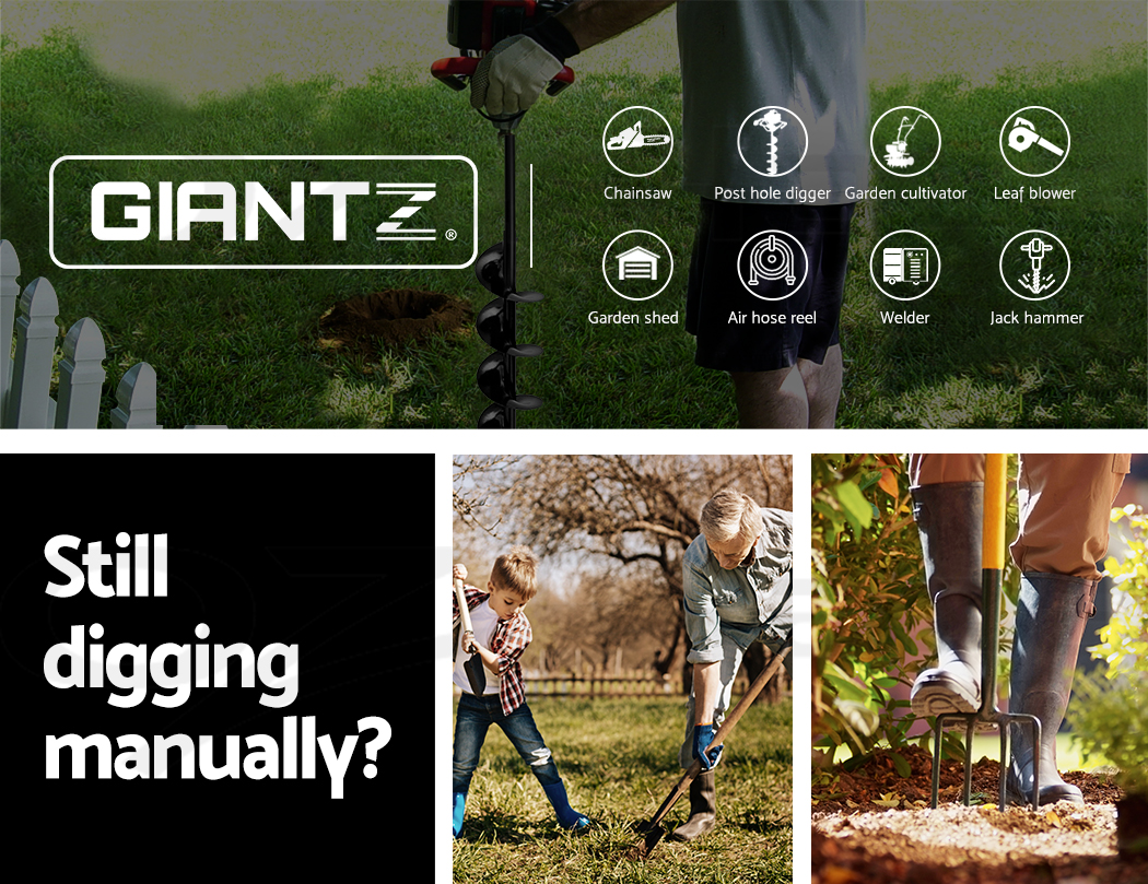 So whether you're digging holes for fence posts, decking supports, plumbing or even planting trees, the GIANTZ Hole Borer/Digger is your ultimate borer and digger hands down.