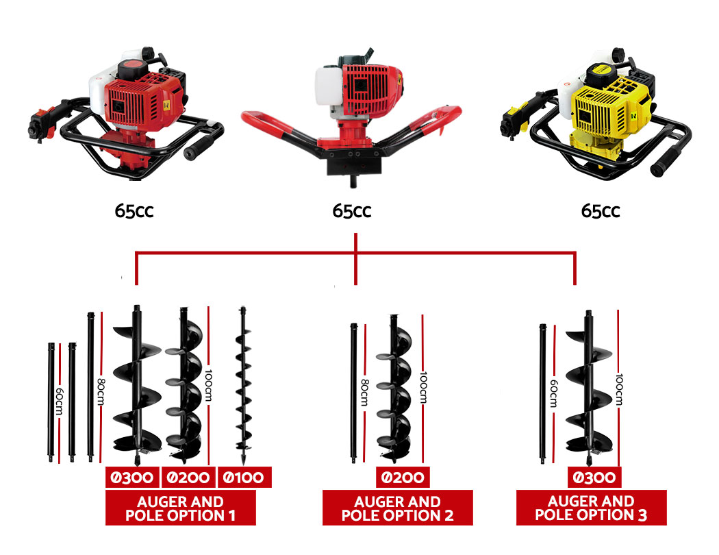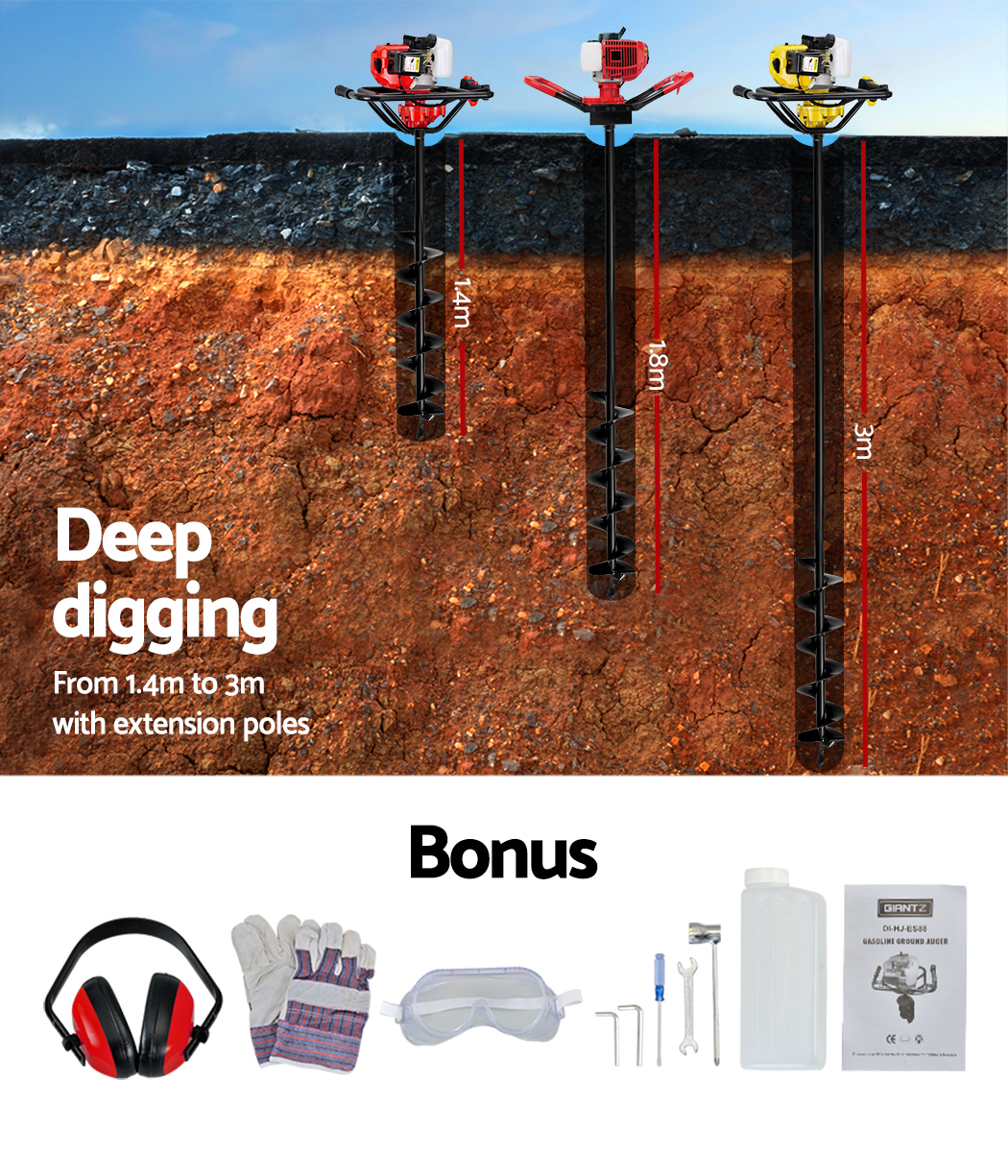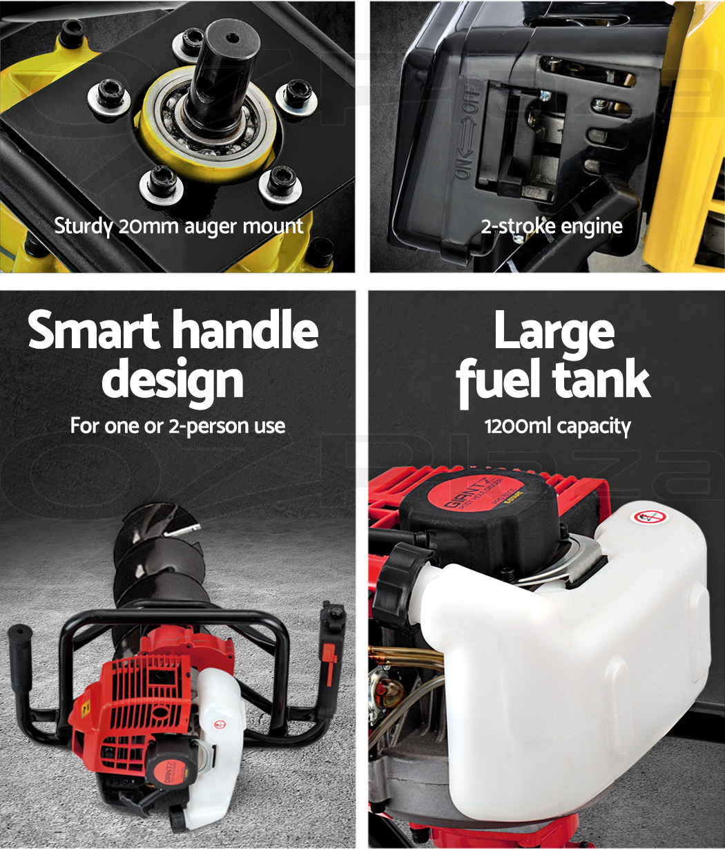Say good bye to backbreaking manual post boring and digging and welcome to the technological breakthrough GIANTZ 65cc Petrol Post Hole Borer/Digger.