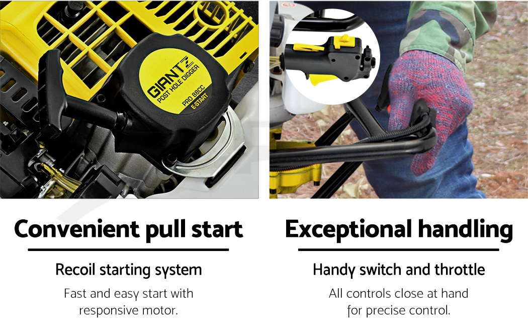 With regard to its operation, the GIANTZ Hole Borer/Digger offers a smooth start with consistent digging/boring power, coupled with quality rubber hand grips for relatively stress-free handling.