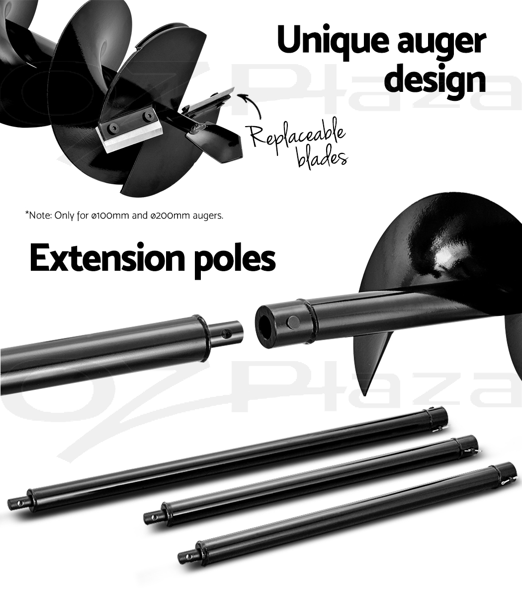 Featuring a solid 20mm auger mount, the GIANTZ Hole Borer/Digger allows the reinforced augers and extensions to connect securely to break hard ground with minimum fuss.