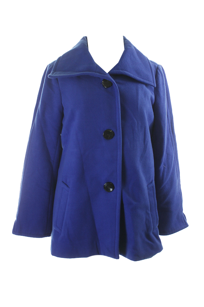 Jm Collection Womens Blue Wing-Collar Button-Front Jacket S