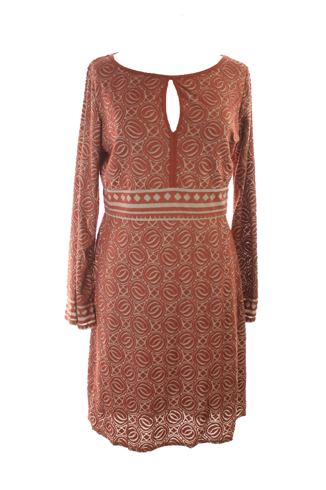 Studio M Womens Brown Long-Sleeve Burnout Dress M