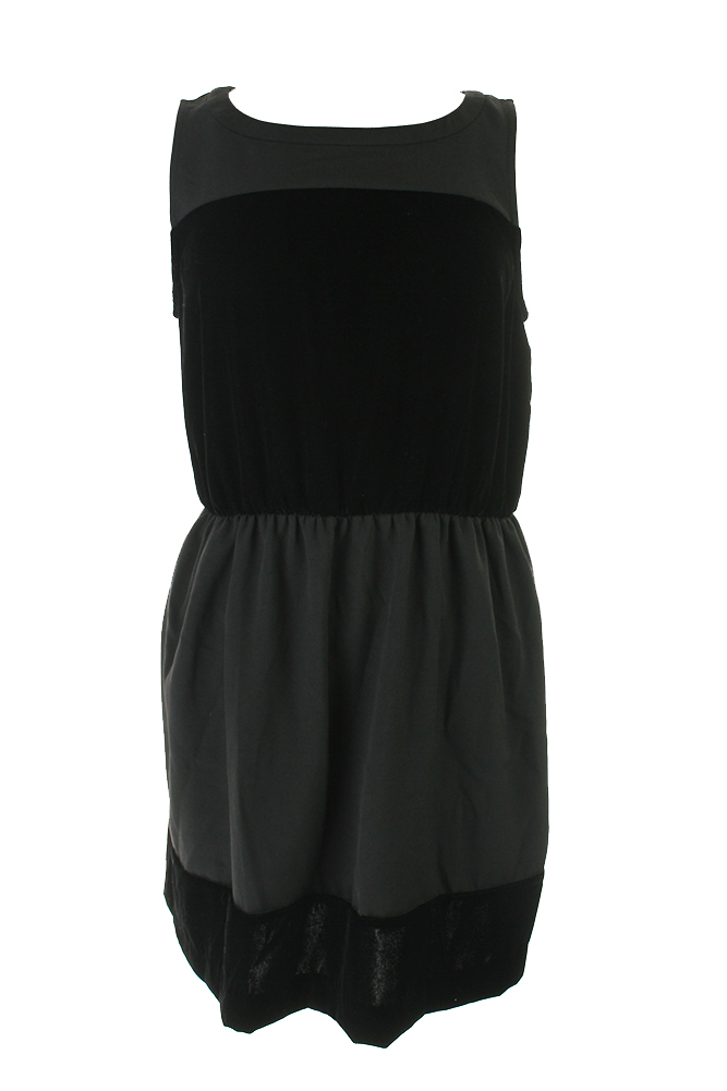 Maison Jules Womens Black Sleeveless Mixed-Media Flared Dress S