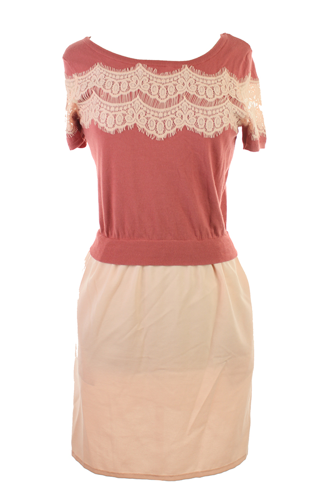 Maison Jules Rust Cap-Sleeve Lace-Overlay Layered-Look Dress M