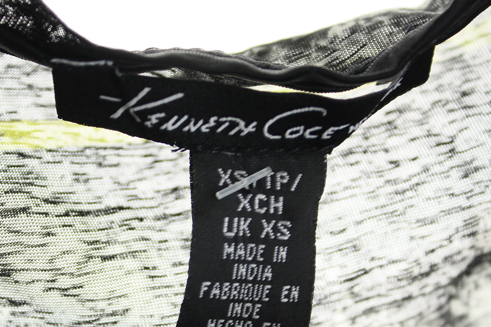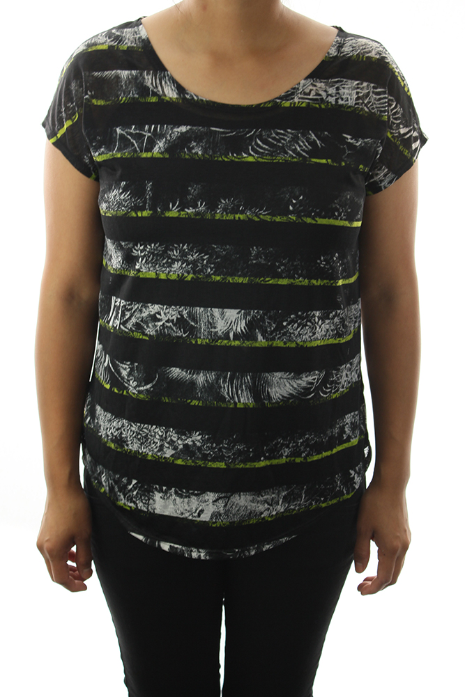 Kenneth Cole Womens Black Multi Cap-Sleeve Printed Sheer T-Shirt XS