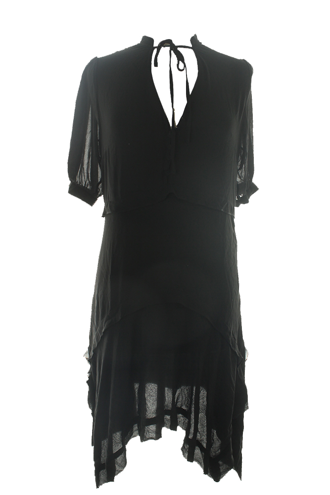 Michael Kors Womens Black Puffer-Sleeve Hi-Lo Dress