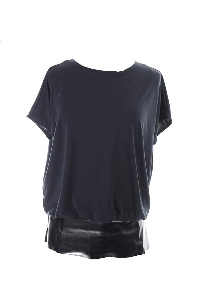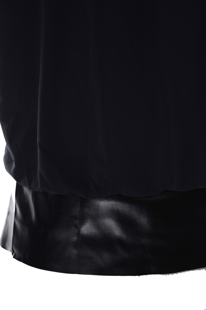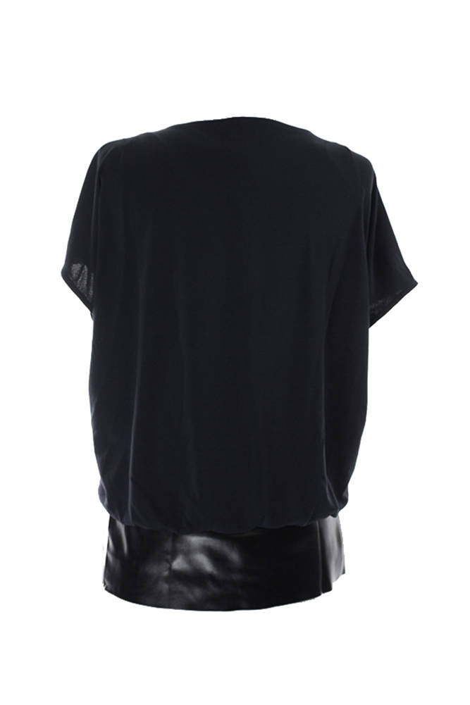 Alfani Womens Petite Black Pleather-Hem Top P-S