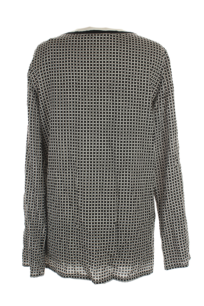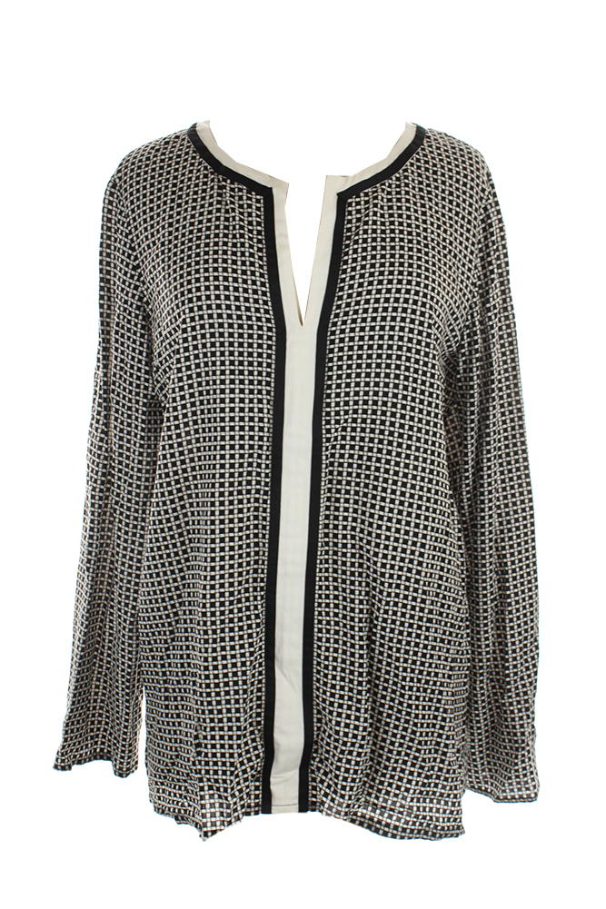 Studio M Womens Black White Geo-Print Split-Neck Blouse L