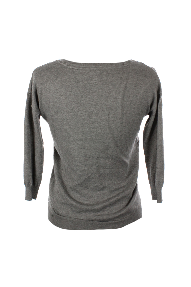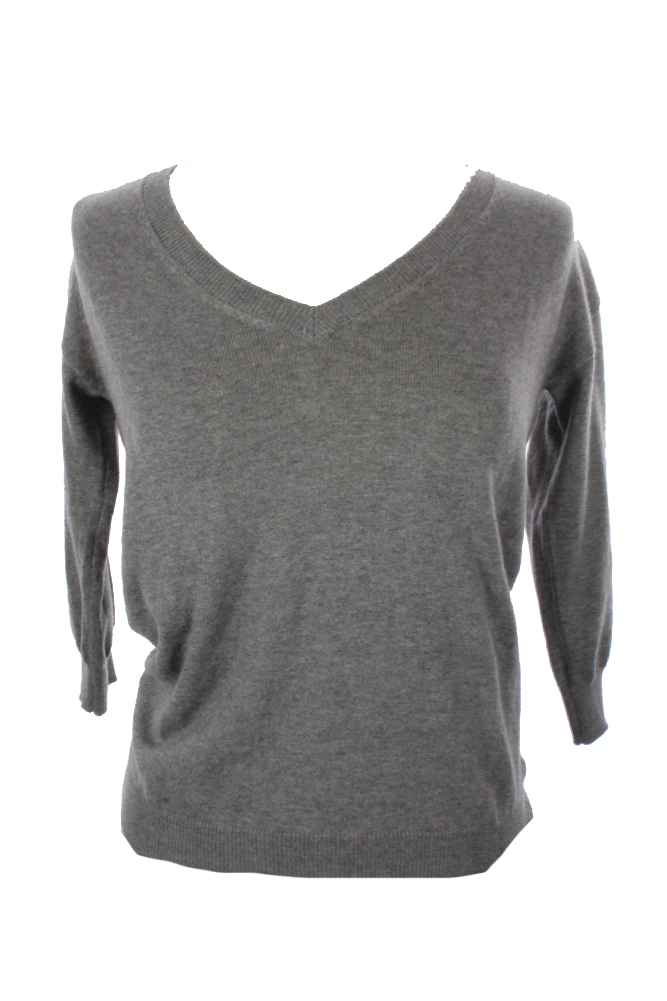 Maison Jules Womens Heather Grey/-Sleeve V-Neck Sweater XS