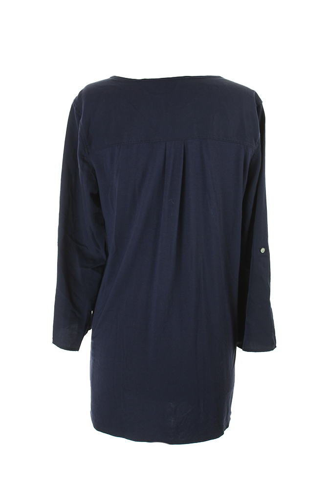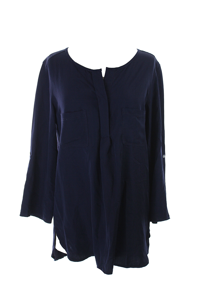 Studio M Womens Navy Roll-Tab-Sleeve Tunic XS