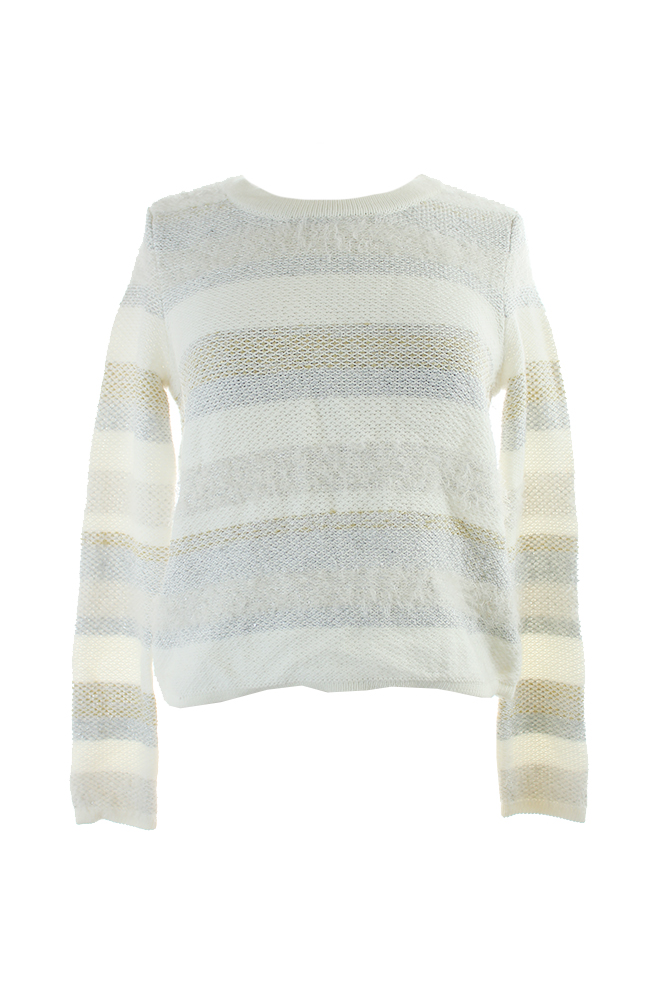 Kiind Of White Eyelash-Knit Metallic Stripe Sweater S