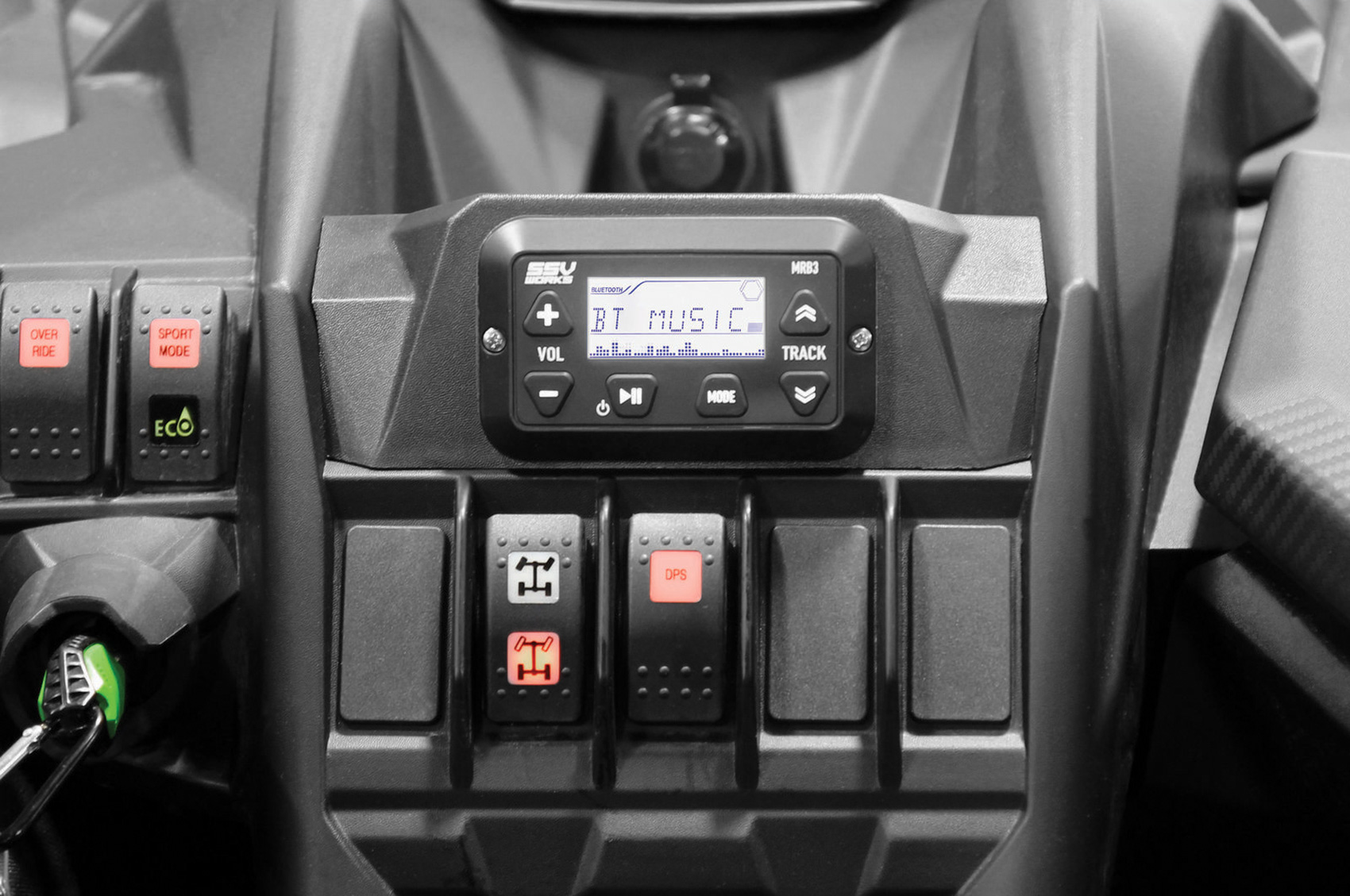The X3-DM3 Dash Kit has been designed and engineered specifically to fit the SSV Works MRB3 unit. The kit seamlessly mounts to the top center of the dash and perfectly matches the factory color and texture to the rest of the X3 interior.