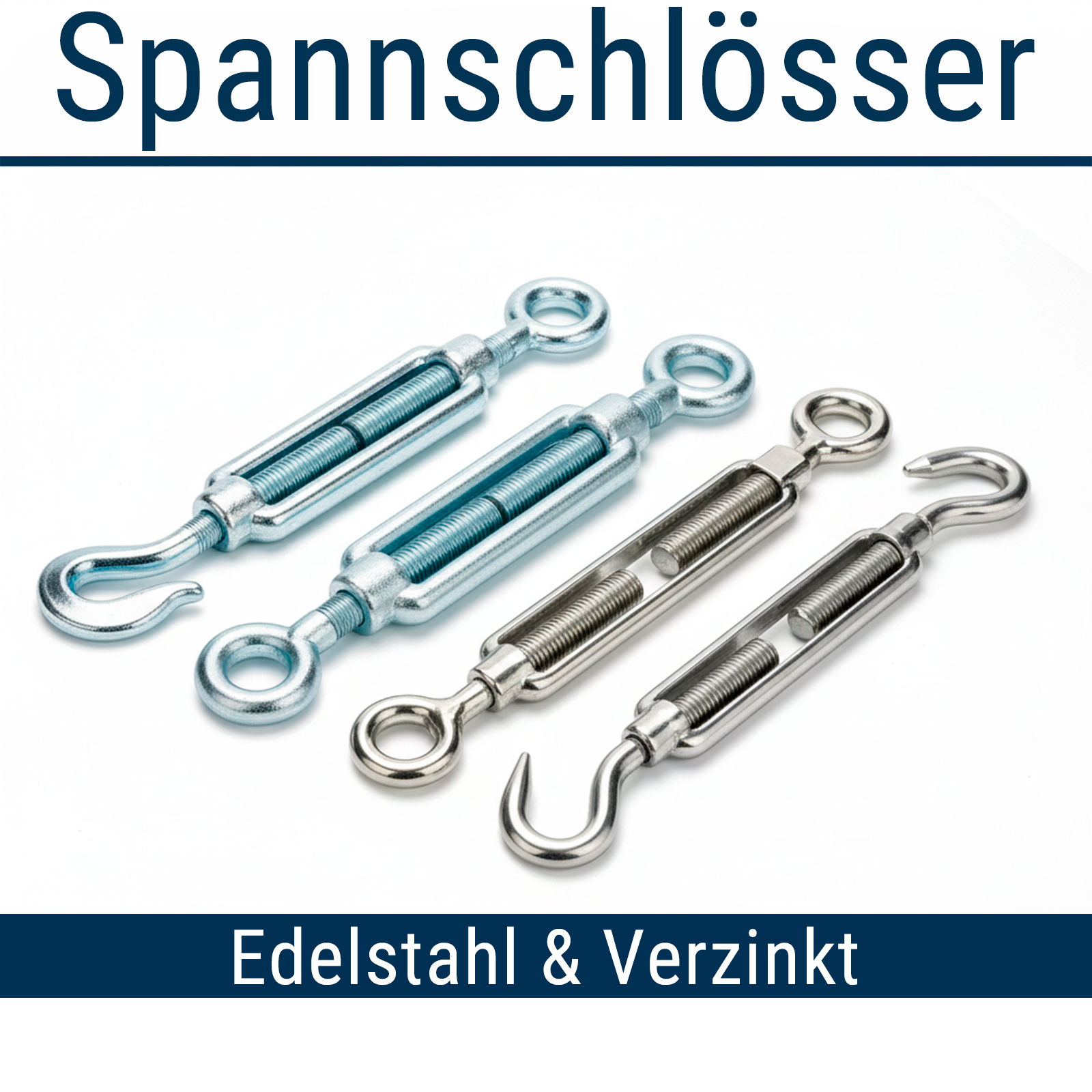 - Spannschlösser sind die ideale Lösung, wenn Seile, Drahtseile, Ketten oder Stahlseile sicher gespannt, justiert oder nachgezogen werden müssen.